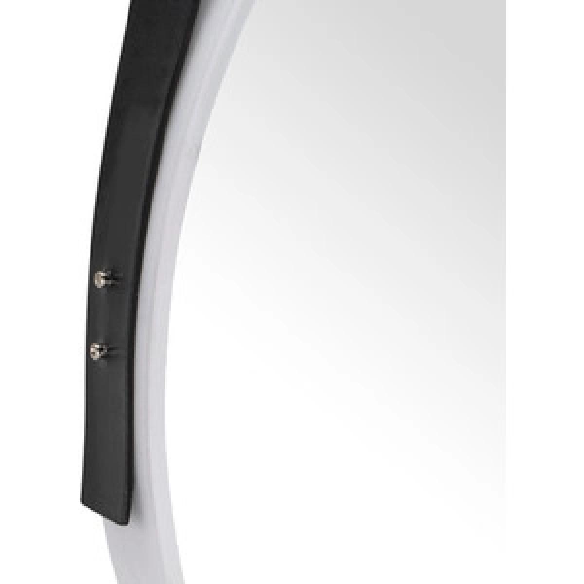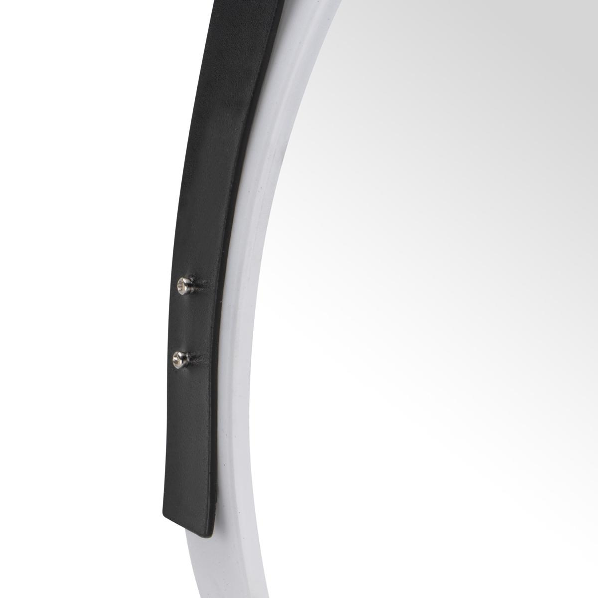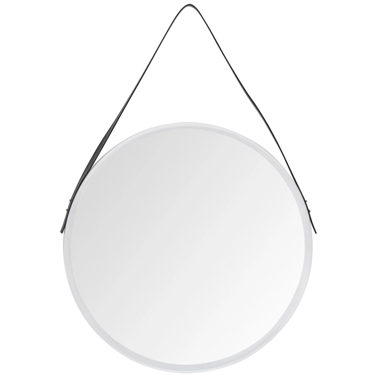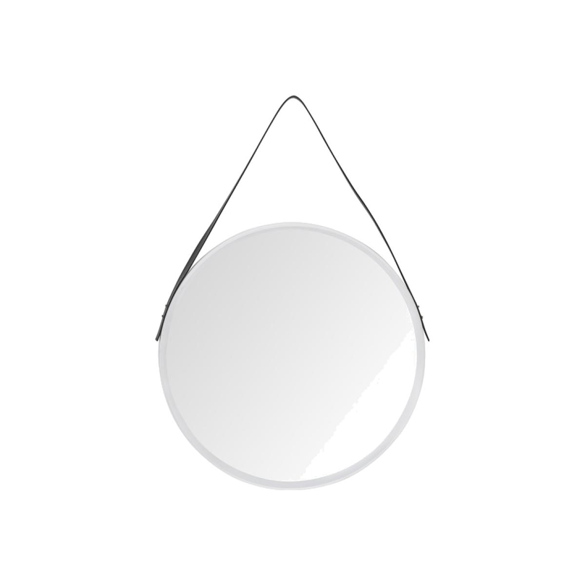Sleek, simple, and stylish, this Modern Round Mirror With Faux Leather Strap is fashioned with a circular white frame and hangs from a strip of black leather. Versatile and modern, this hanging mirror will lend itself to your dressing room, bedroom, or living space, no matter your theme, and provide a clear reflection while brightening up your home.