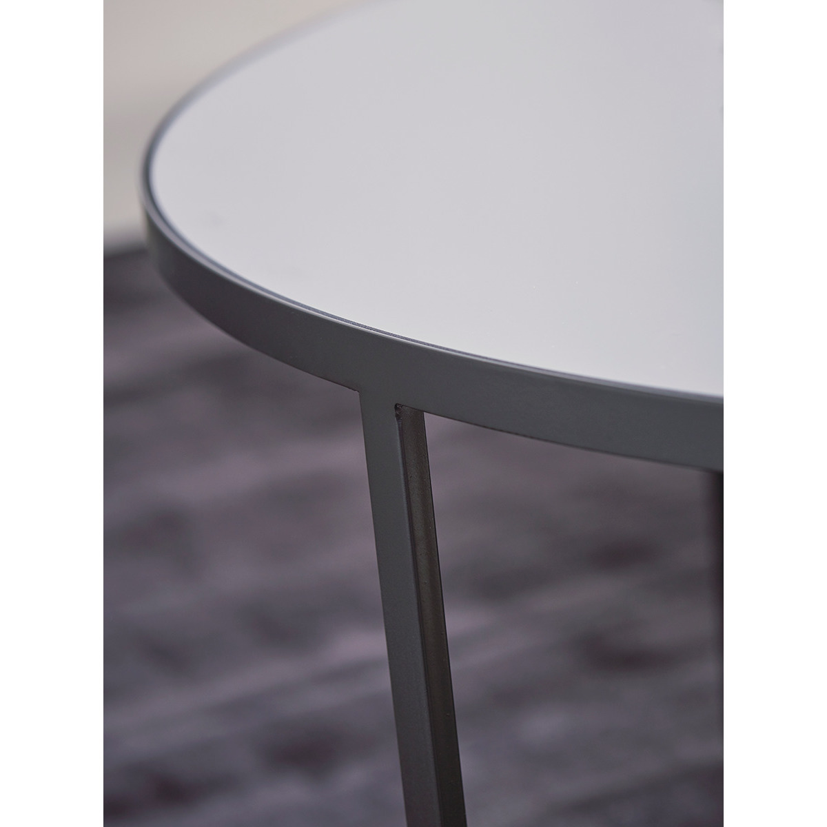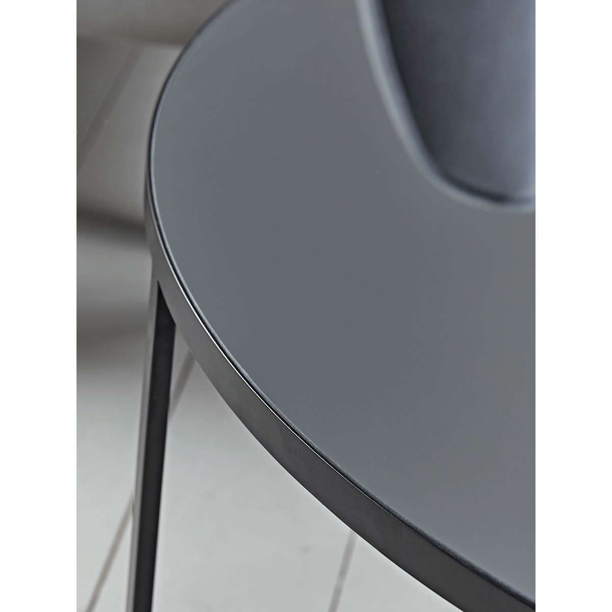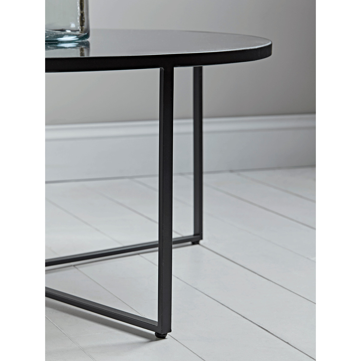 The perfect contemporary centrepiece for any living space, our fabulous round coffee table features a mirrored top in smokey grey, with a modern, cross legged frame in black. A beautiful way to reflect the light in your home, the mirrored surface will add a unique touch to your decor. Style with our Aged Glass Panel Mirror and Distressed Maroq Pendant to recreate our look.