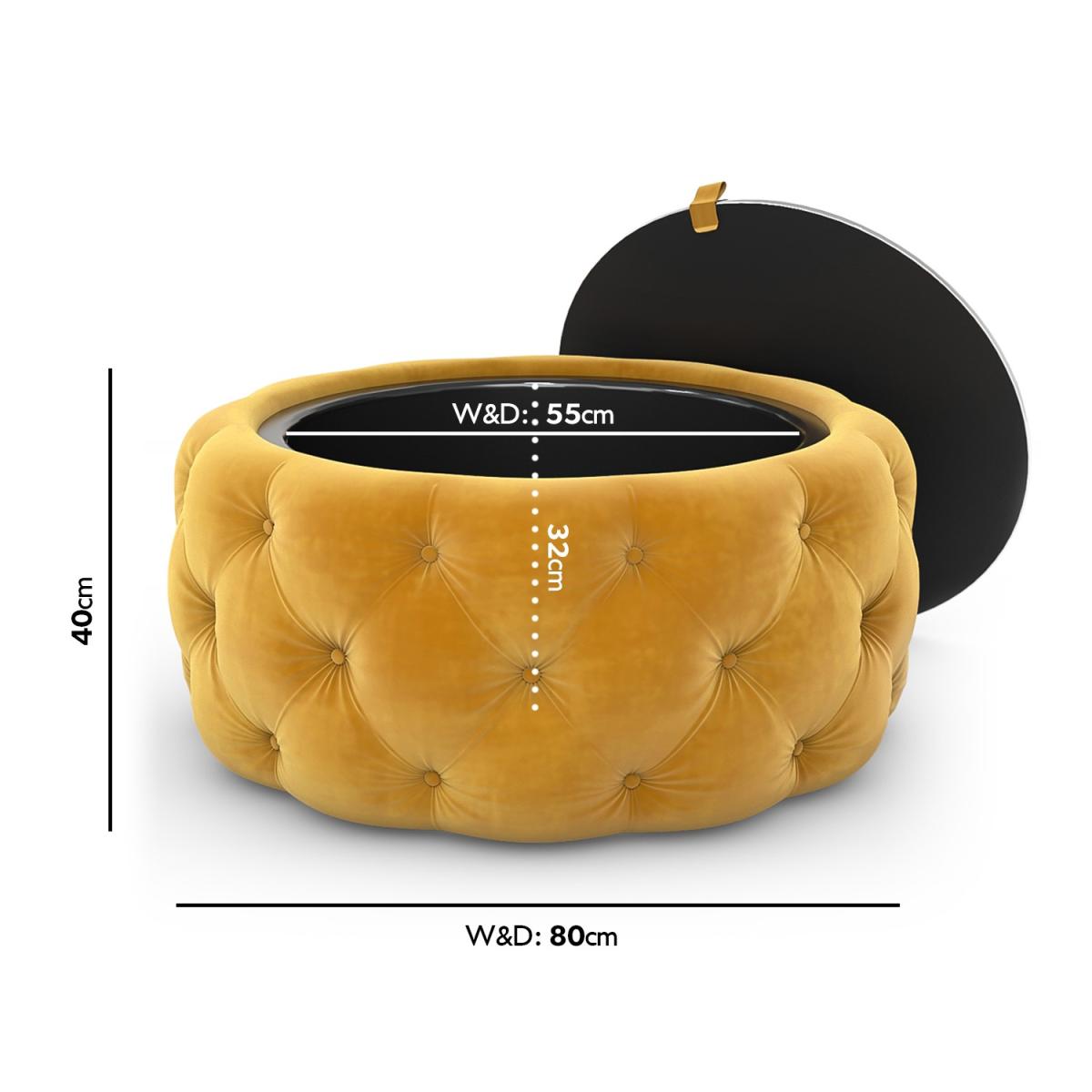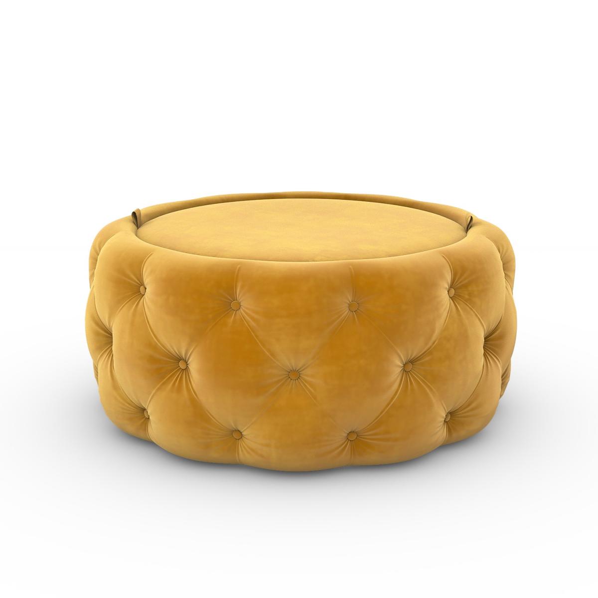 Round Mustard Velvet Ottoman Coffee Table - Clio