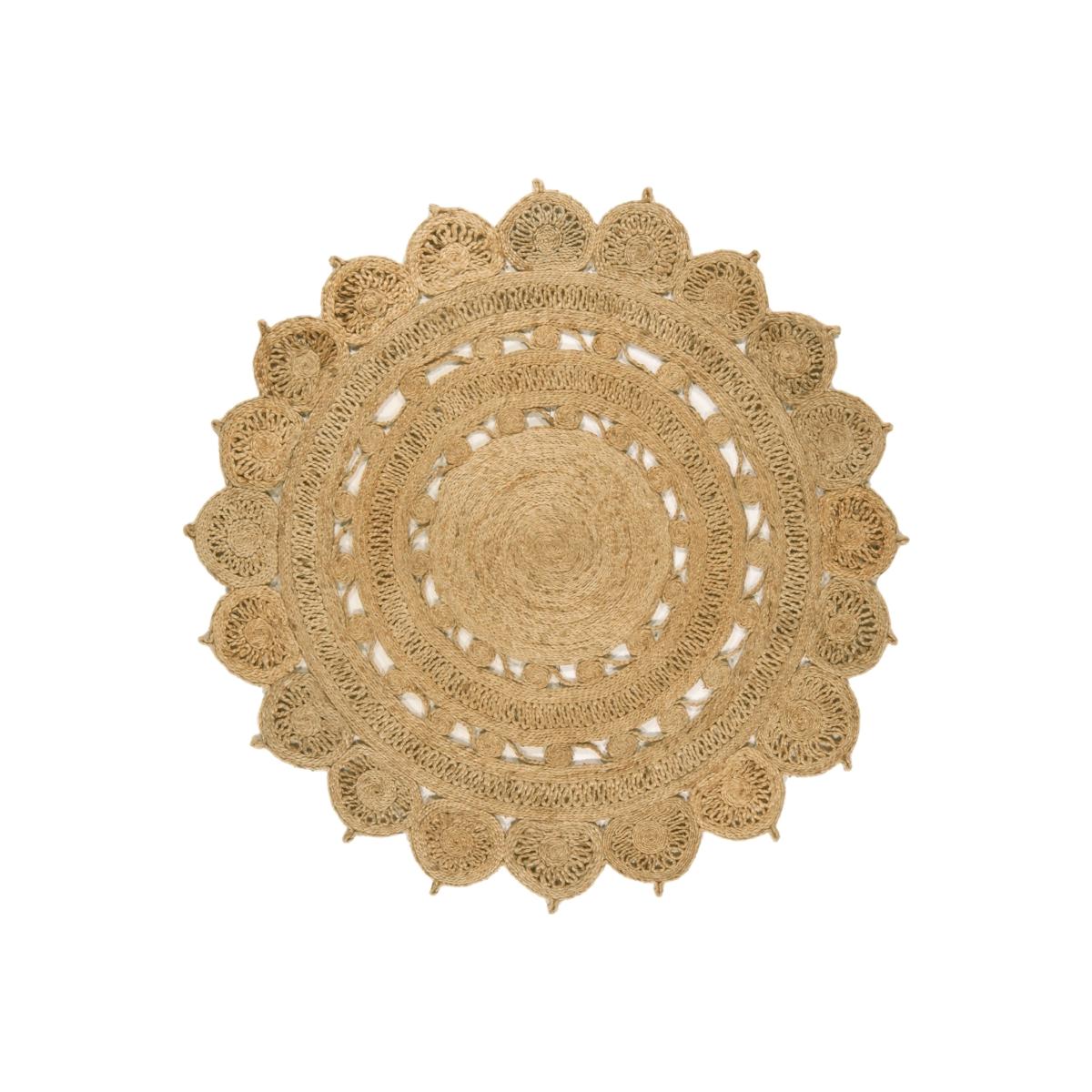 Dimensions. H150 x W150 cm. The Zira round rug is made from 100% Jute and features beautifully intricate hand woven patterns helping to ensure this natural rug will be the centrepiece in any room in the home. Features. Stunningly intricate patterned. Hand woven rug. Made from 100% Jute Natural looking round rug. Perfect centrepiece for your living or dining room. No assembly required..