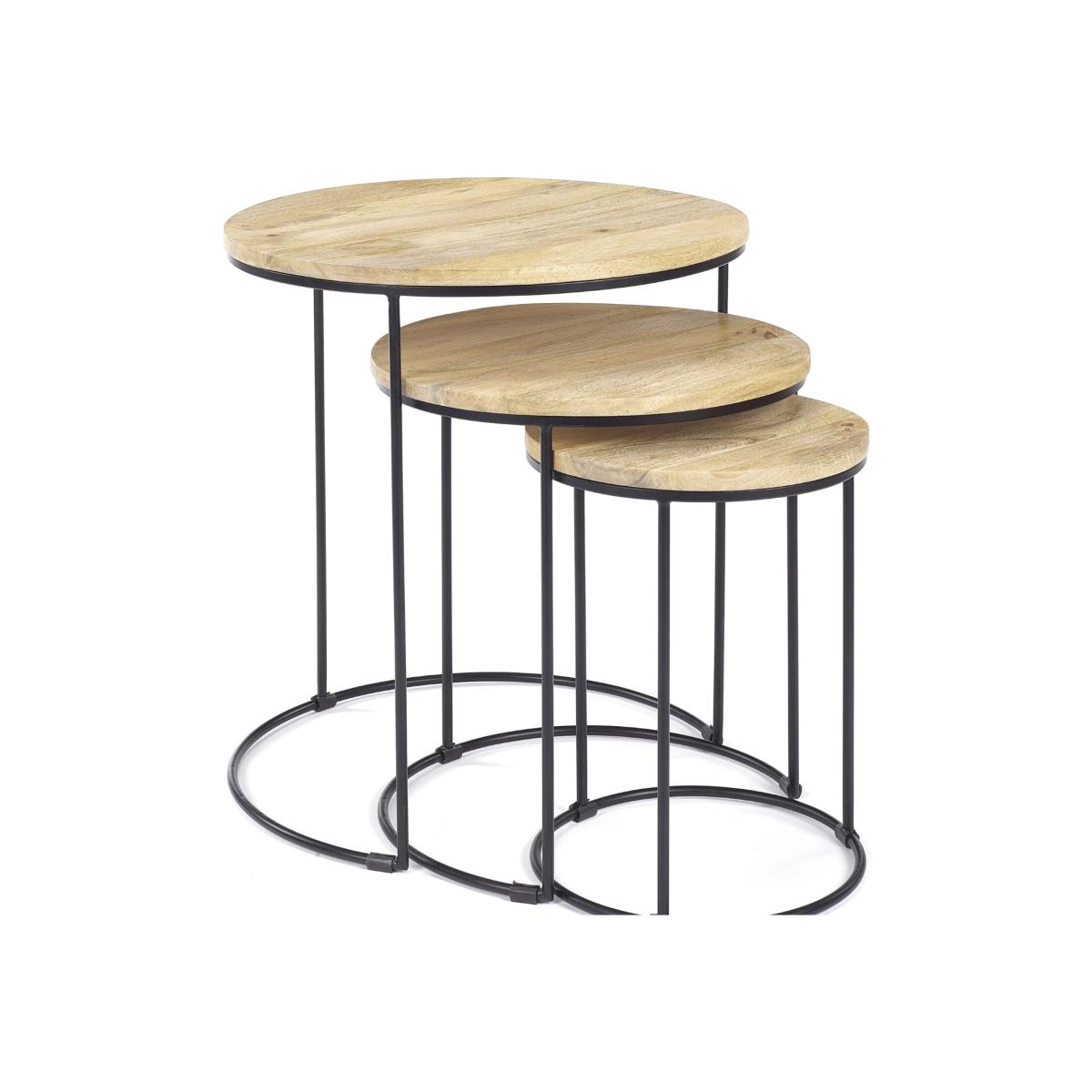 A beautiful nest of three tables which will be a great addition to any living room, offering extra space for that all important glass of wine or cup of coffee. The nest of tables is made from solid Mango wood and finished with a light Oak stain and wax. The framework is metal and finished in black. This nest of three tables will be delivered fully assembled, simply unbox and they are ready to use.