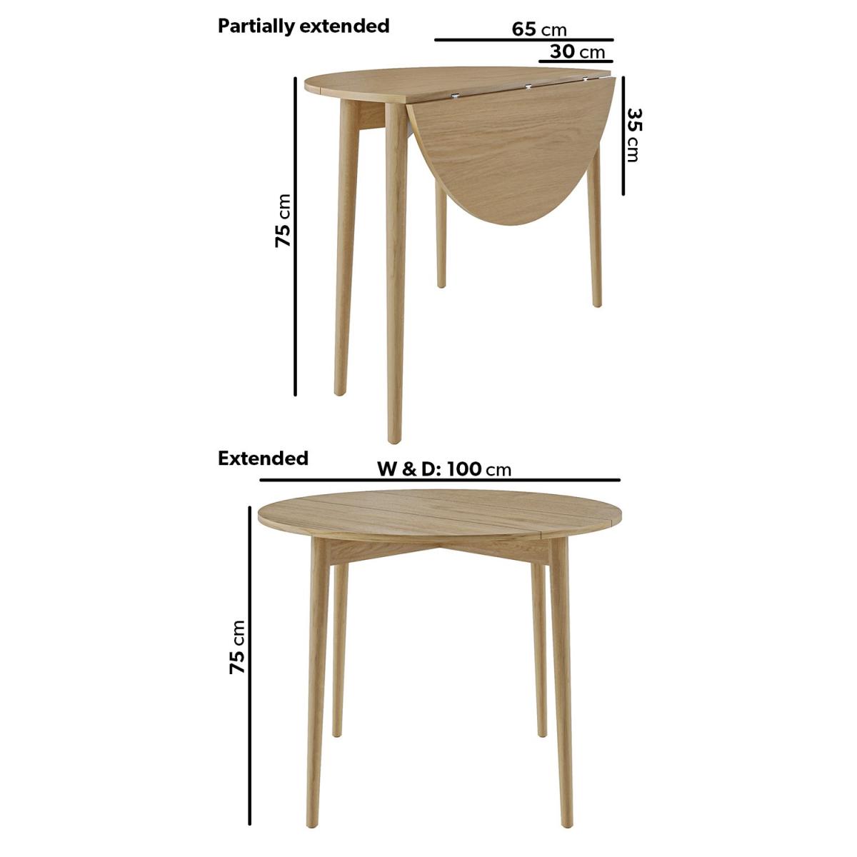 Round Oak Folding Drop Leaf Dining Table - Seats 4 - Rudy
