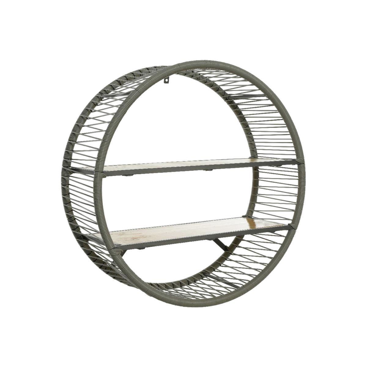 Design. A functional and practical piece for your garden, the Grey Round Outdoor Shelf is finished in a lovely grey colour, providing a neutral colour scheme so to fit well with a range of outdoor settings. Wicker detailing creates a traditional look that feels timeless, and pine and iron ensure that this is a hard-wearing piece that will stand the test of time. As well as this being a practical piece, the Grey Round Outdoor Shelf can also be used as a decorative item to incorporate smaller detailing for a unique look.