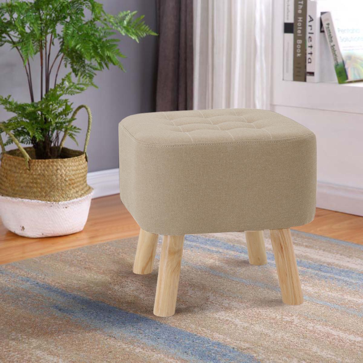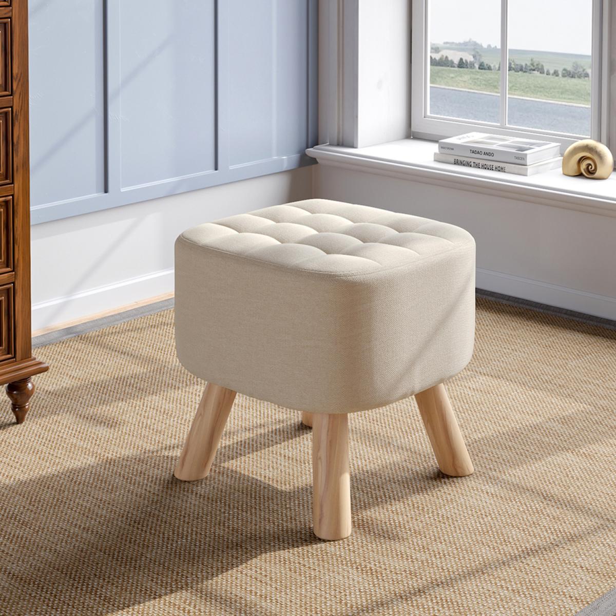 Our ottoman padded footstool not only offers a place to rest your feet but also serves as instant seating for guests. And is filled with resilient upholstered foam, which provides more softness and comfort. The solid and stable wood foot will allow you and your family to sit up there safely.