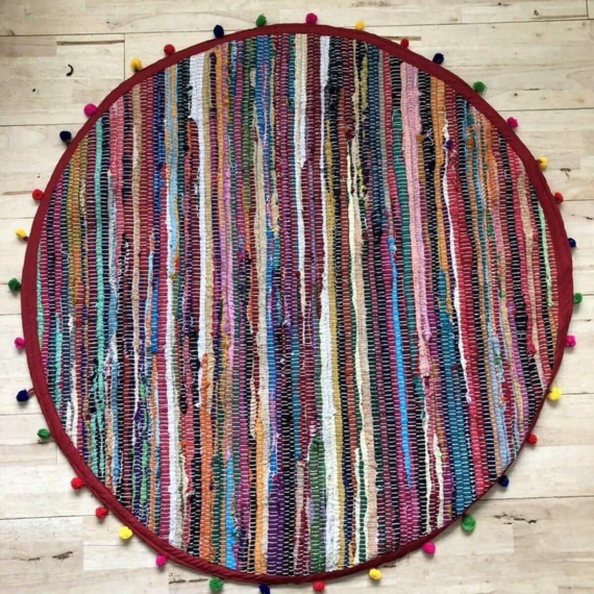 Round Pom Pom Recycled Rag Rug 90cm - Multi