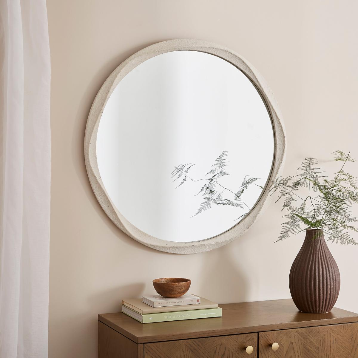 I love the round pond stone effect mirror for its versatile, natural look that can add warmth and texture to various interiors. It works particularly well in contemporary or coastal-style spaces, where its organic feel complements neutral palettes and light wood furnishings. For styling tips, consider pairing it with earthy tones or textured ceramics on a console or dresser to create a balanced, calming vignette. It’s also a great functional statement piece in hallways or bedrooms, helping to brighten the space while offering practical reflection. Its unique stone effect makes it a subtle yet striking addition that can suit both minimalist and more layered, textured interiors.