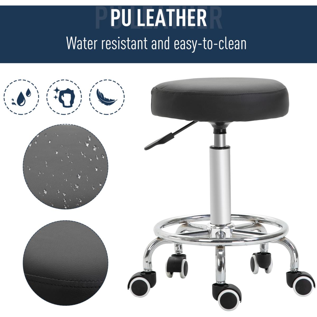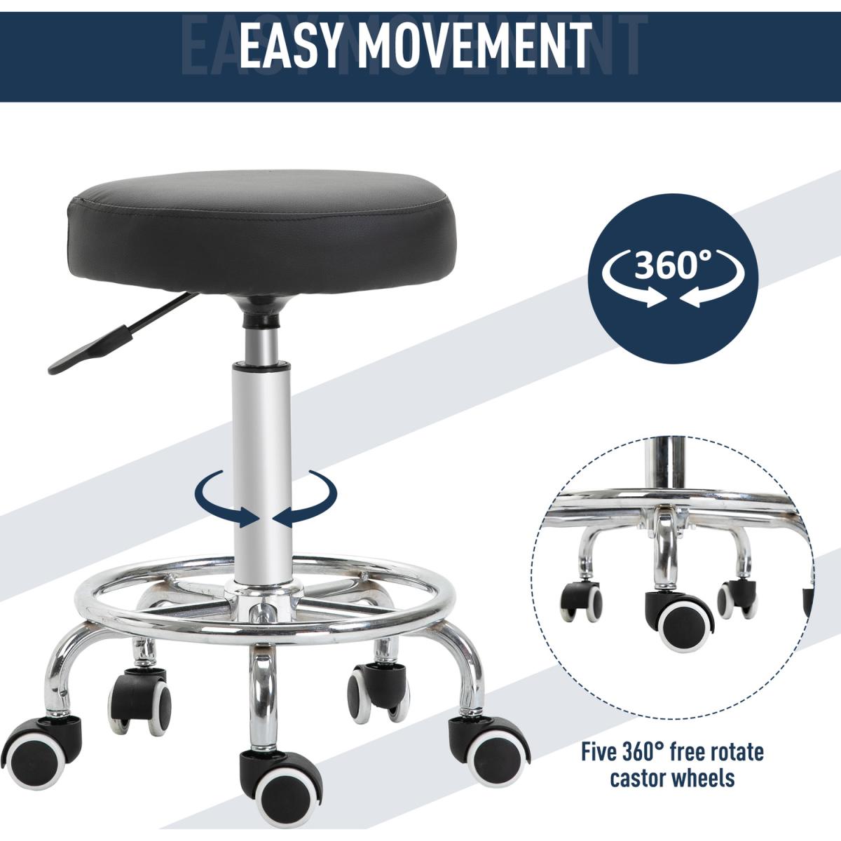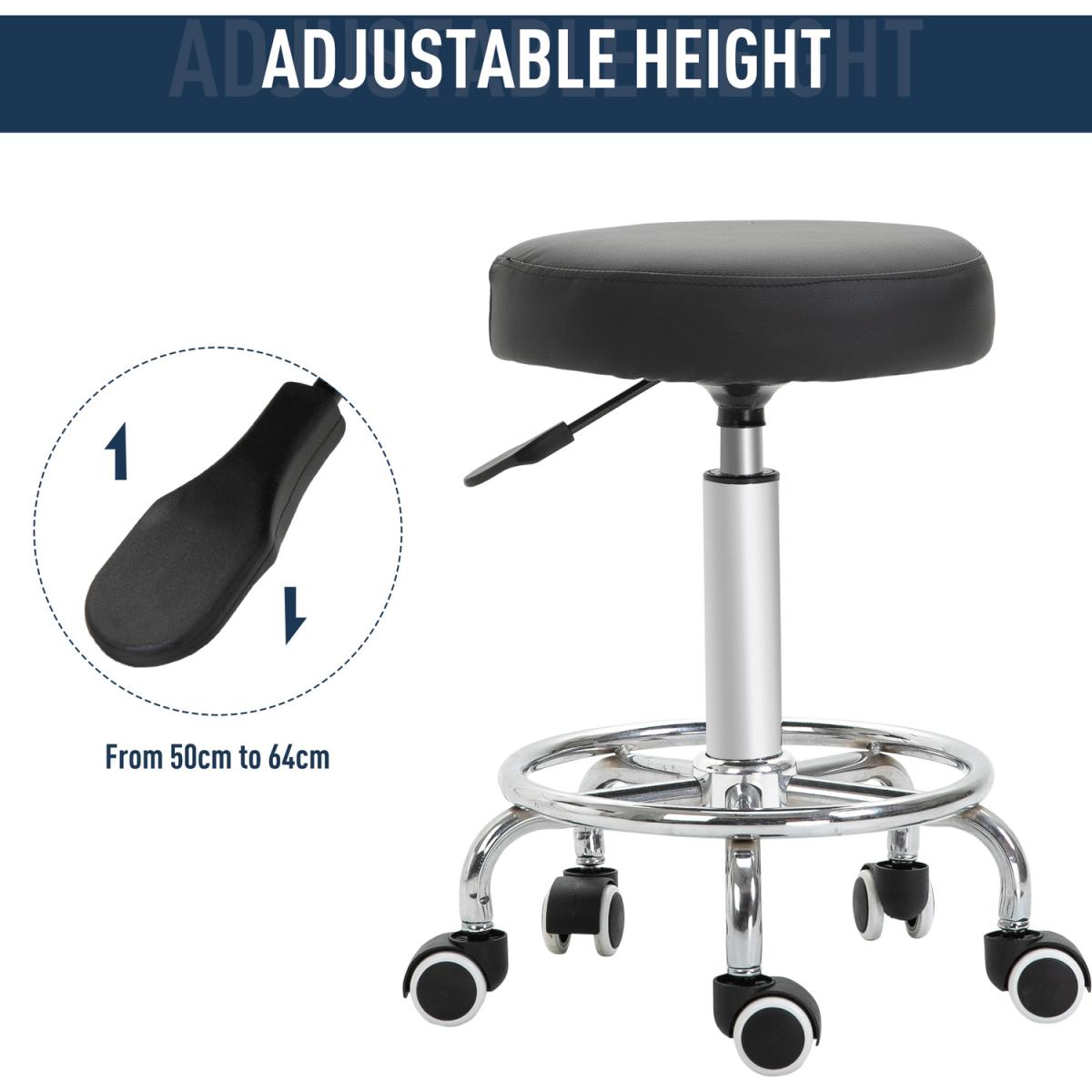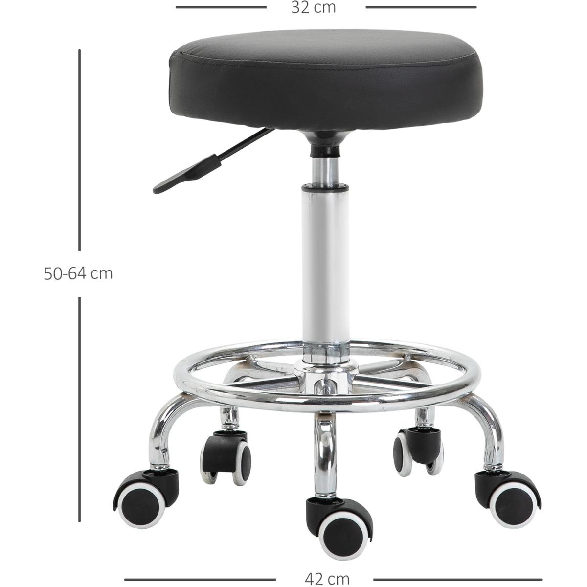 This round salon stool from Vinsetto provides maximum comfort and freedom as your work, whether that be as a hairdresser, dentist, beautician or so forth. It uses a steel frame for a solid and reliable structure, adjustable in height to set to a level that works for you. It is fitted with a round padded seat for comfort, wrapped in smooth PU leather which can be wiped clean. On the bottom there are five castor wheels for easy movement, with a large footrest for extra comfort. An easy way to move easily around clients and perfect that haircut or treatment.