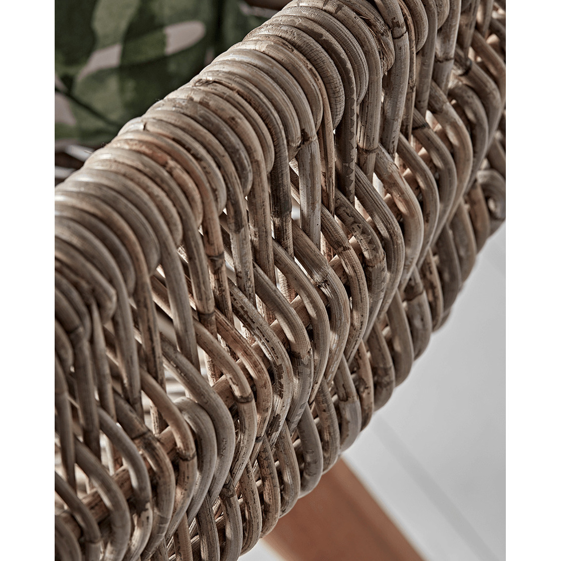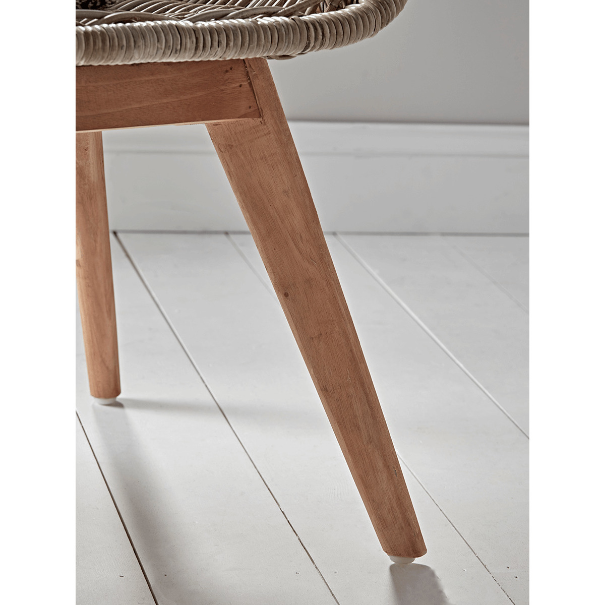 Made from natural round rattan with four tapered warm teak legs, our elegant dining chair features a comfortable, scoop shaped seat with arms and a high backrest.