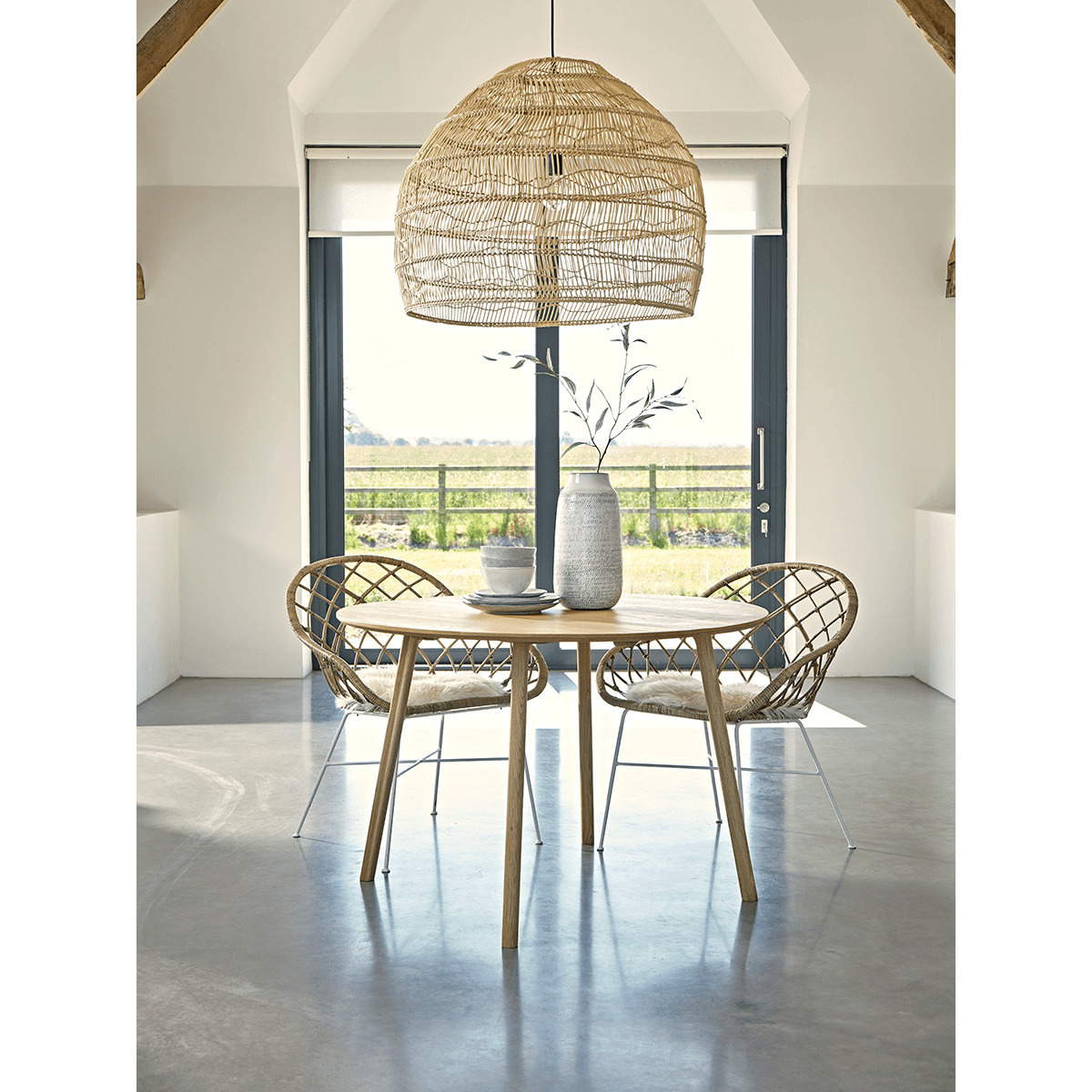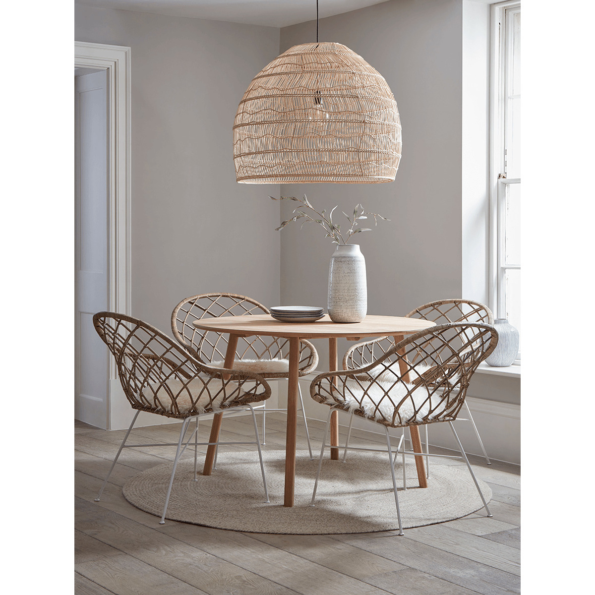 I love this talking point for any dining setting because of its relaxed yet stylish vibe. The open weave rattan design makes it a great choice for almost any interior, from boho-chic to Scandi-minimalist, adding texture and a touch of natural warmth. It works particularly well in sunlit kitchens or conservatories, where its airy structure enhances the lightness of the space. For styling tips, pair it with neutral or earthy tones to keep the look cohesive, and add a cosy cushion on the seat for extra comfort. It’s also versatile enough to work around a variety of table shapes and sizes, making it an easy, stylish upgrade for casual or more formal interiors.