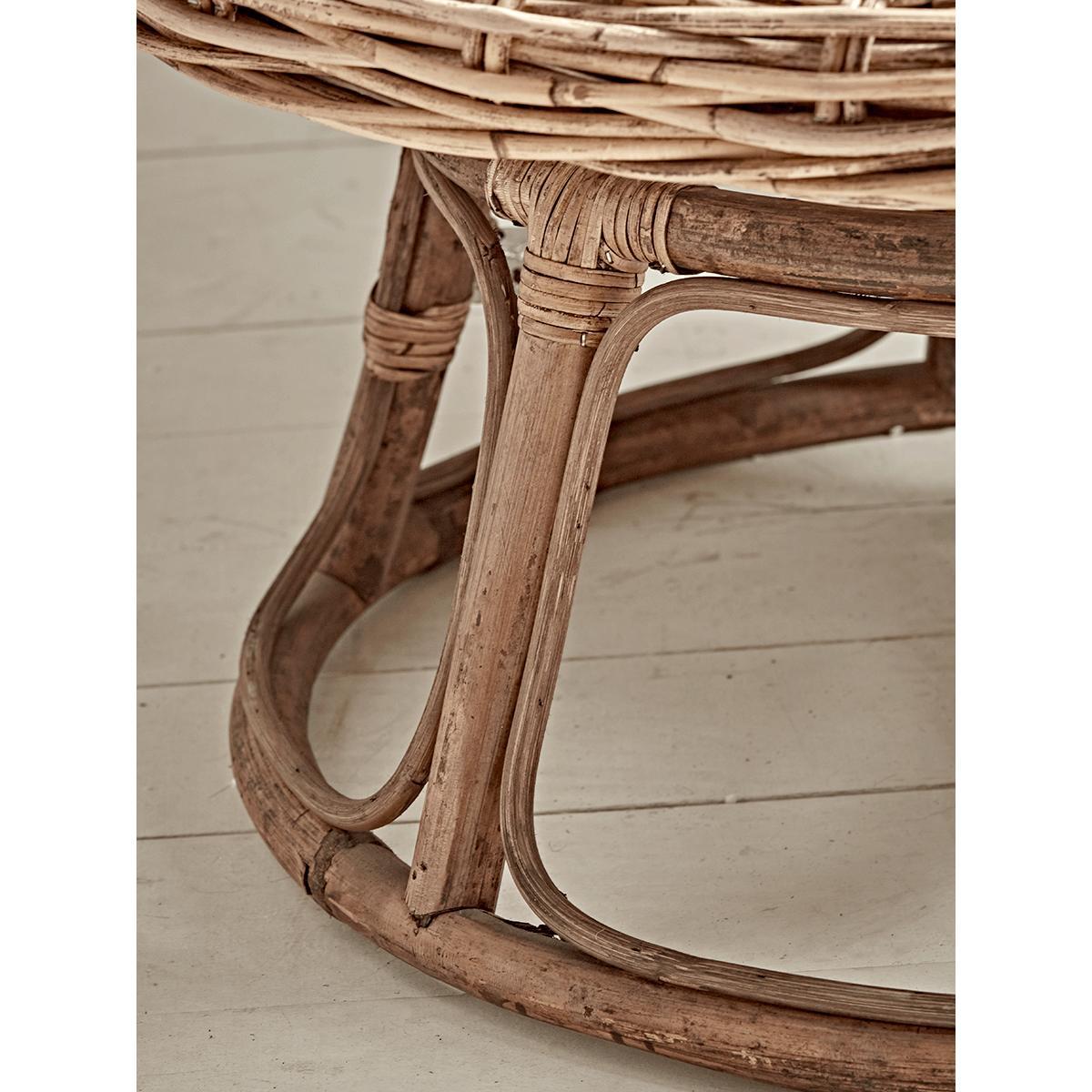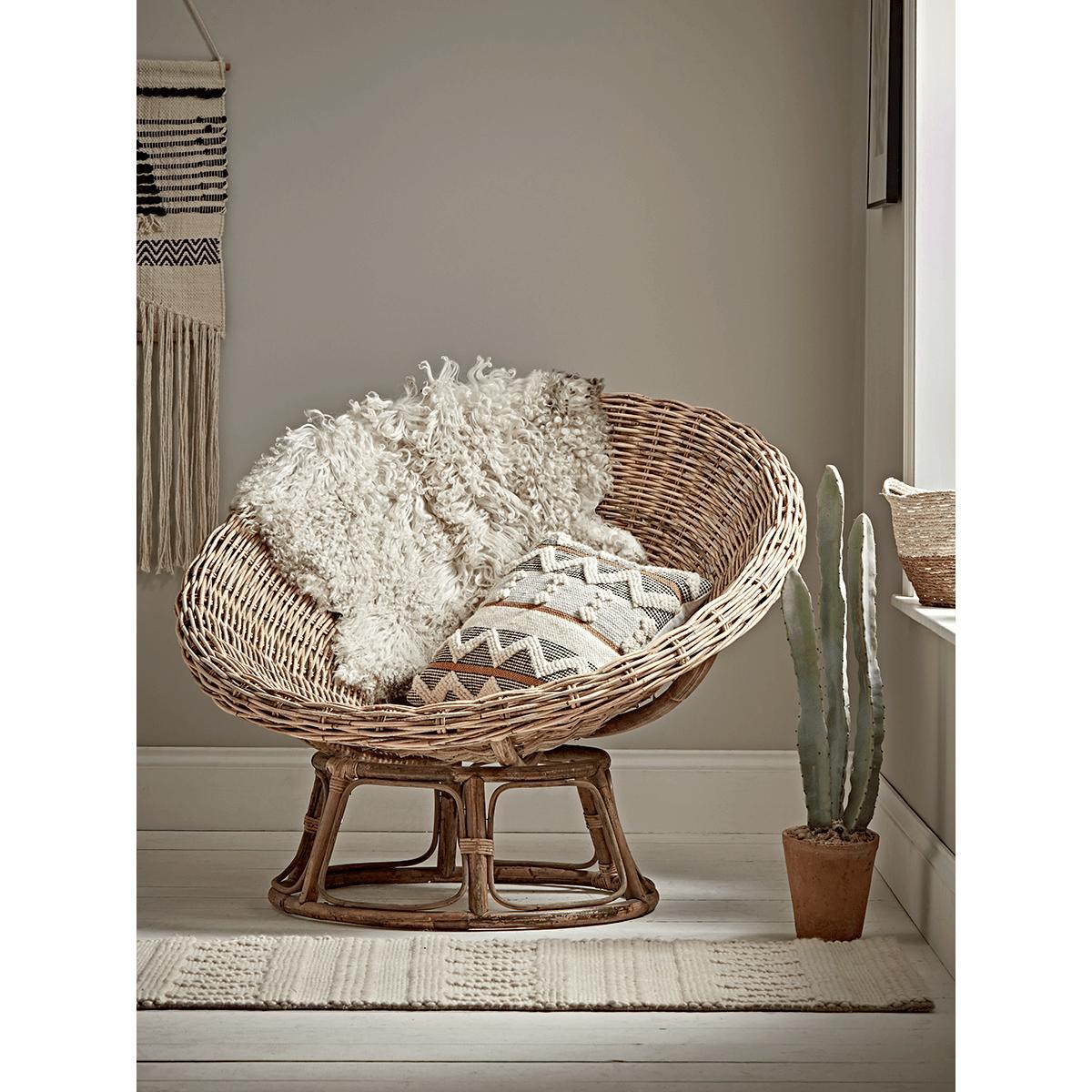 Allow our large, statement papasan chair to scoop you up into its lap, and discover a new level of comfort. Each piece features a large, curved seat crafted from rustic round rattan, and a sturdy cane base. Adorn with a sheepskin and cushion for ultimate cosiness.