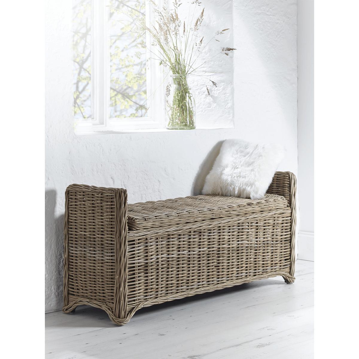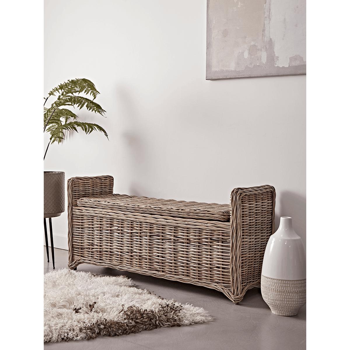 Round Rattan Storage Bench