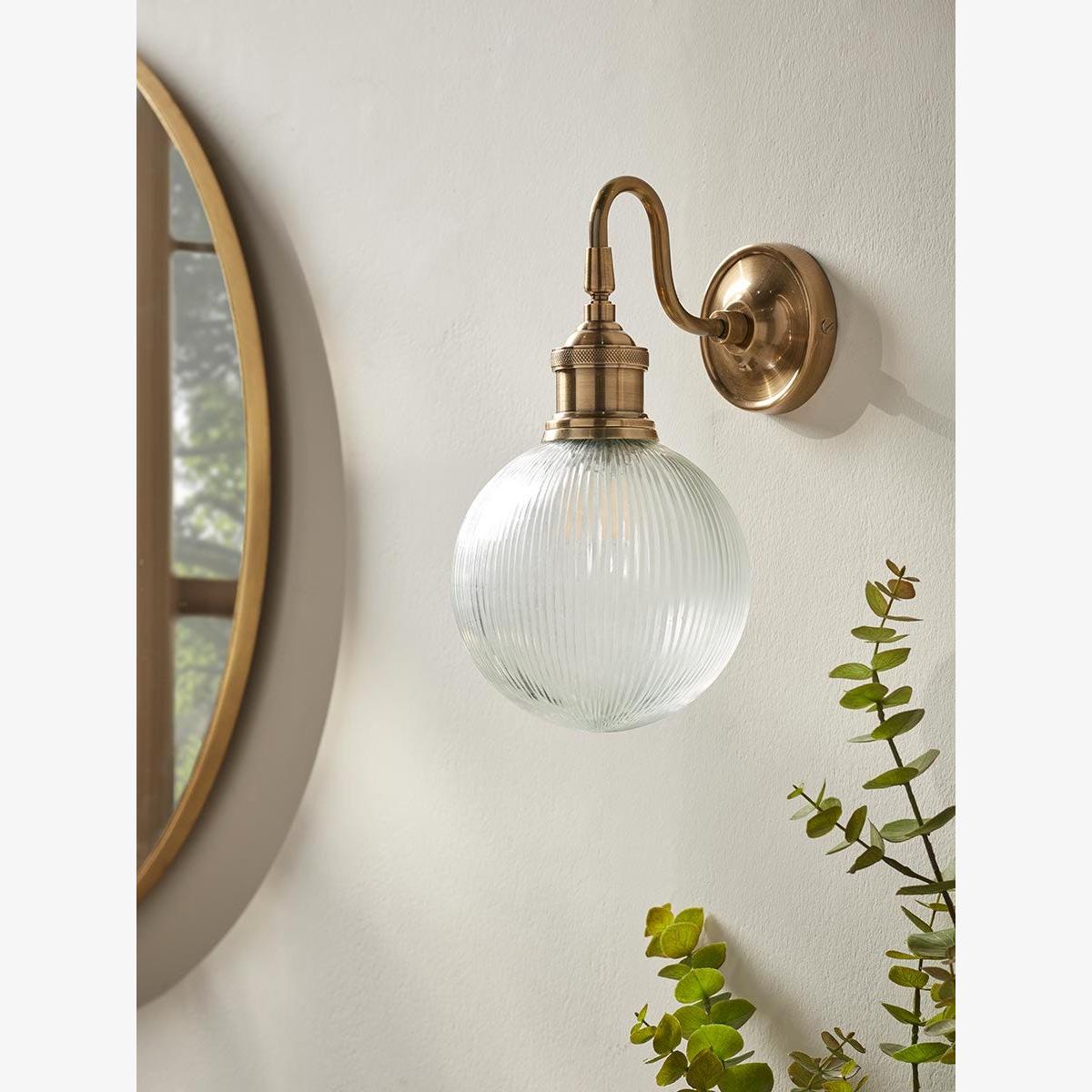 Simple in style, this wall light will add timeless charm to your home. With a ribbed circular shade, warmth is radiated around your home with the bronze, curved arm and round wall plate for a calming glow that will sit well in any considered lighting scheme.   Discover how to create the perfect lighting scheme for your home using our Lighting Buying Guide.