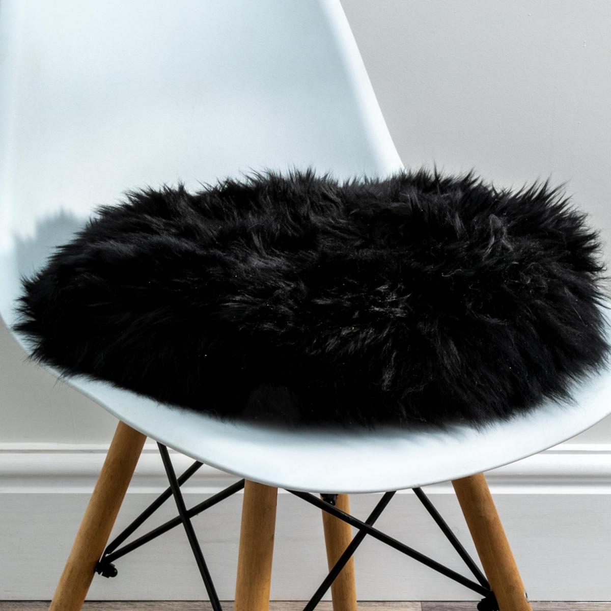 Round Sheepskin Chair Pad - Black