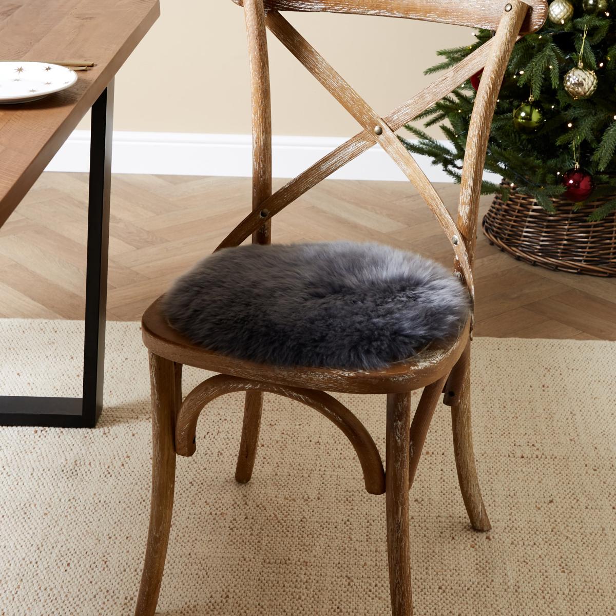 I love this sheepskin seat pad for adding a cosy, tactile layer to wooden or painted chairs, making them instantly more inviting. Its charcoal colour works well in both modern and rustic interiors, providing a subtle way to introduce texture without overpowering the space. Practical styling tips include layering it with other textiles, like a patterned cushion or throw, to create visual interest. It’s also a great accessory for both dining spaces and home offices, especially if you spend long periods sitting; the sheepskin adds comfort and softness. Overall, it’s a versatile piece that combines style with function, perfect for updating your seating with very little effort.