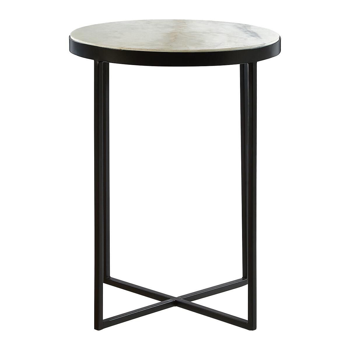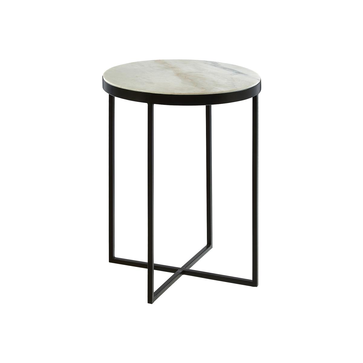 The legs of this side table are made from iron, and have a minimal design that intersects at the base. A single piece of round marble is set into the top frame to provide this accent piece with a luxurious finish. The marble is patterned by subtle wisps and veins, adding a touch of colour to its milky white surface. Product Dimensions: 41cmx41cmx51cm Please remember to measure your available space before ordering. Packaged Dimensions: 56cmx 47cmx 47cm Weight: 11.1kg. This product will be dispatched by one of our trusted suppliers. You’ll be contacted by their selected courier about your delivery.