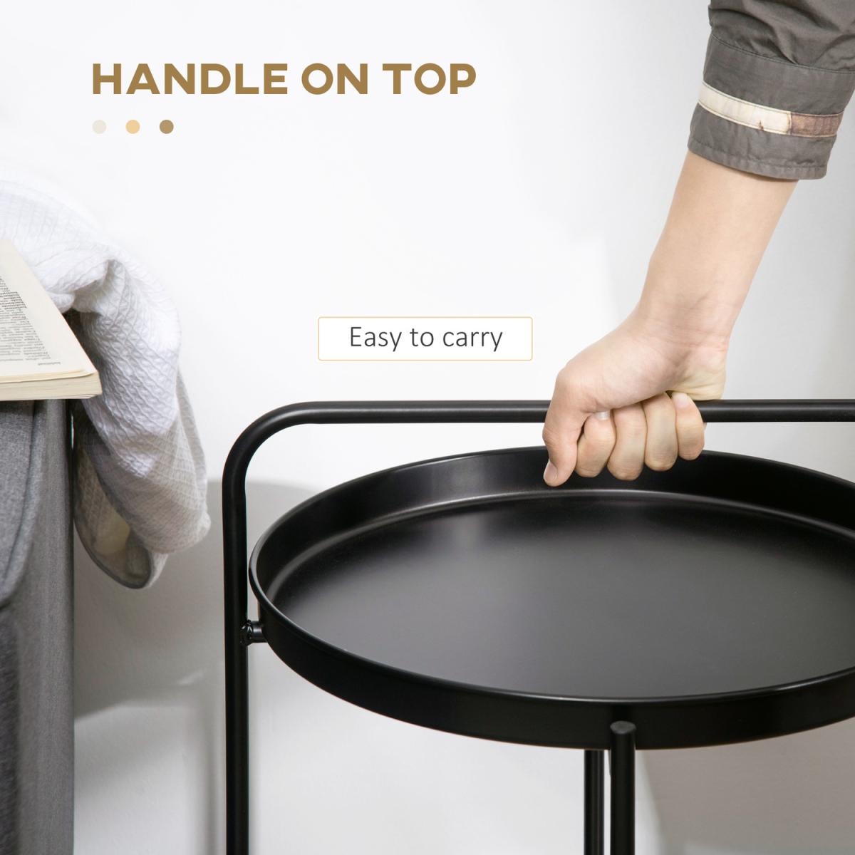 The steel side table with storage from HOMCOM is designed influenced by industrial and modern style. The round metal collection has sleek round tubular legs and round removable tray for easy transport of food or other items. The serving tray and the flat shelf can hold books, remote controls, phones, photo frames, etc. After work, you can just have a cup of coffee or tea and have a short relaxation near this beautiful end table.