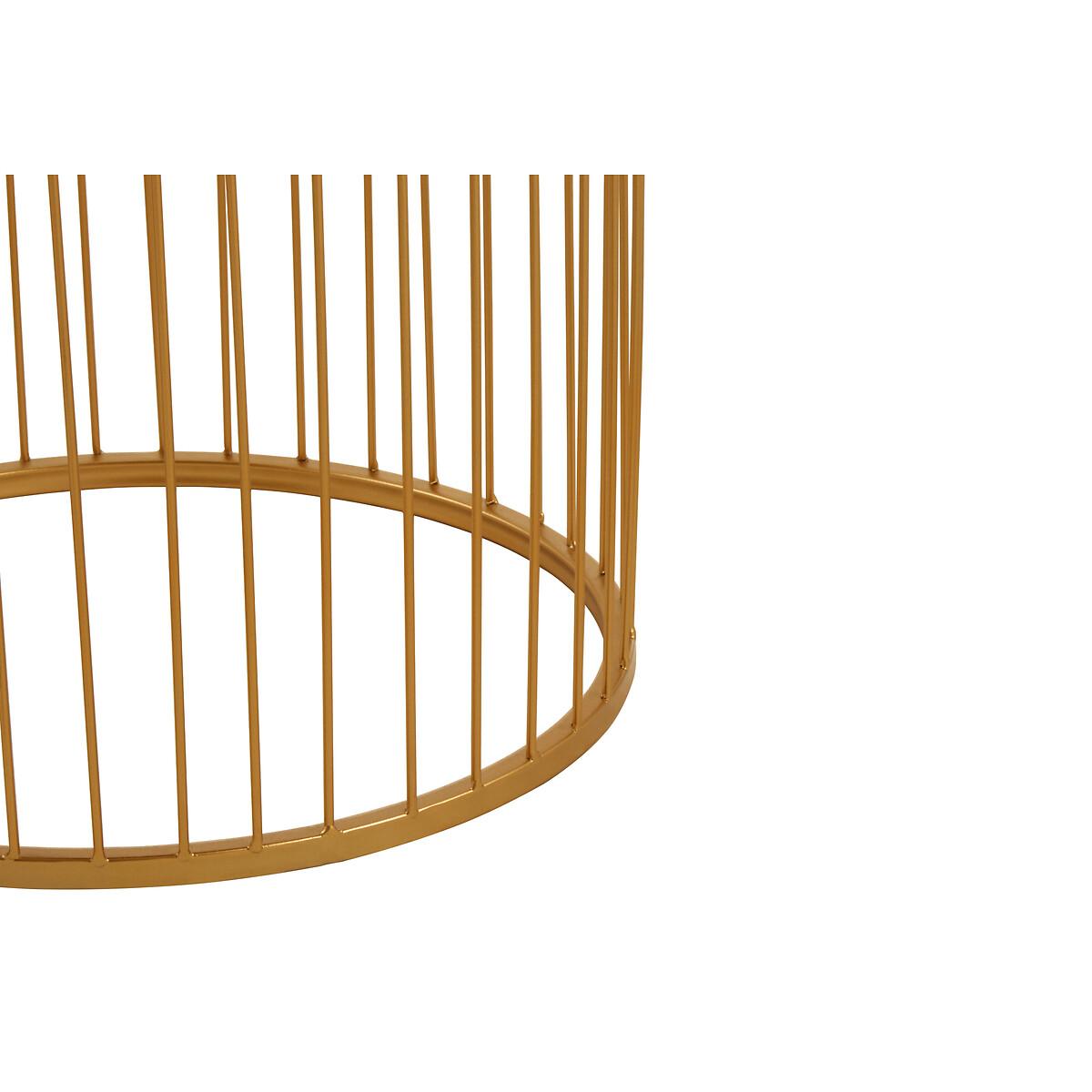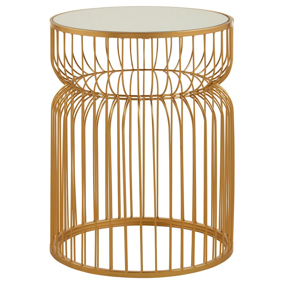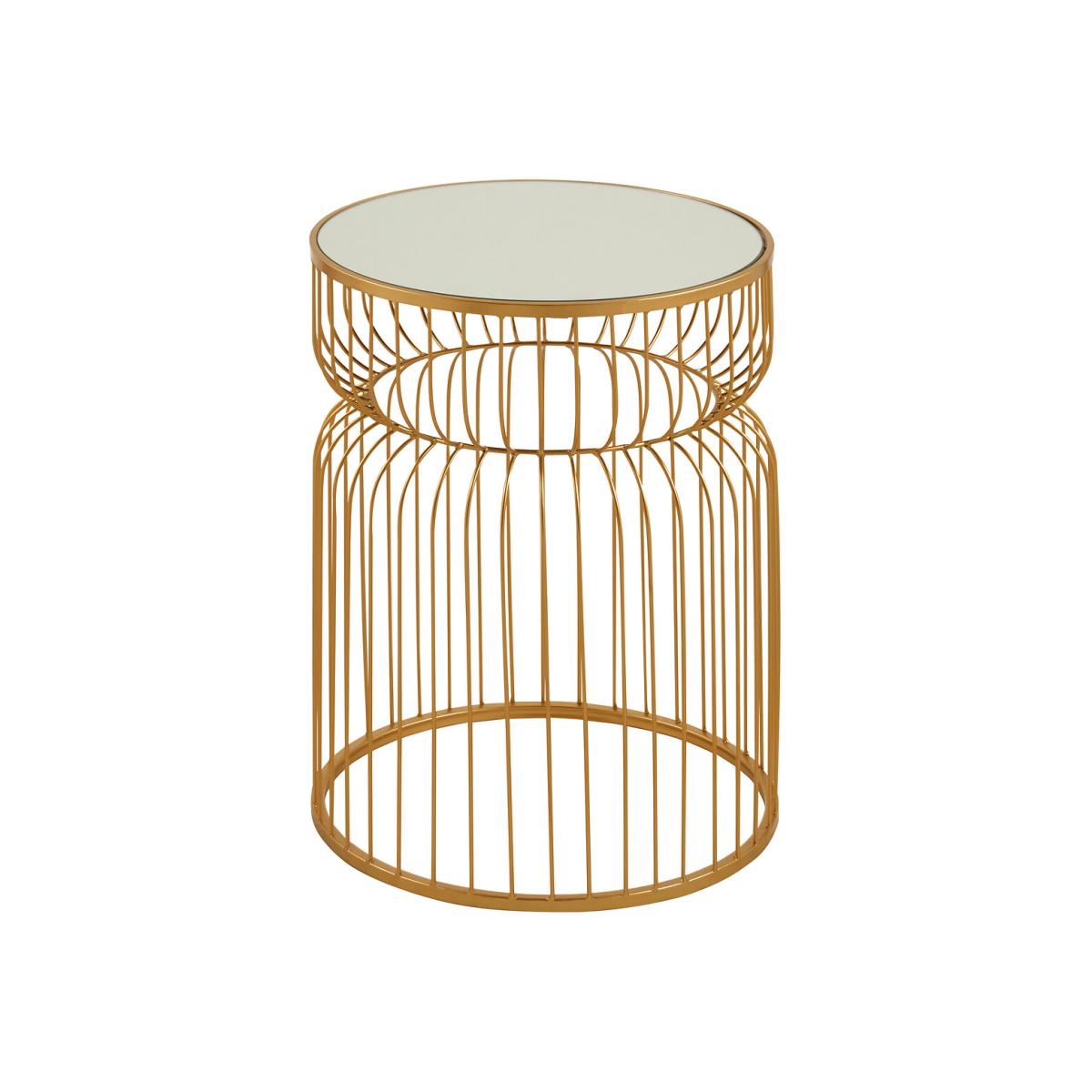 This contemporary side table features warm gold finish metal wires which combine to form a cage design. The frame is gently pinched from the neck and gives the otherwise straight lines a curving aesthetic. A round mirrored glass neatly sits atop the wired base. Coordinate it with luxe furniture and accessories. Product Dimensions: 42cmx42cmx55cm Please remember to measure your available space before ordering. Packaged Dimensions: 60cmx 46cmx 46cm Weight: 6.3kg. This product will be dispatched by one of our trusted suppliers. You’ll be contacted by their selected courier about your delivery.