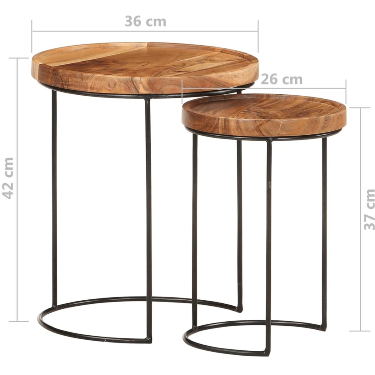 This classic wooden coffee table set exudes a vintage charm and will make a timeless addition to your home. These coffee tables are made of acacia wood which is solid, stable, and environmentally friendly. The frames are made of steel, adding to the tables sturdiness. The beautiful wood grains make every piece of furniture unique and slightly different from the next. This wooden table set features 2 tabletops, which are perfect for placing food, drinks and other essentials within reach.