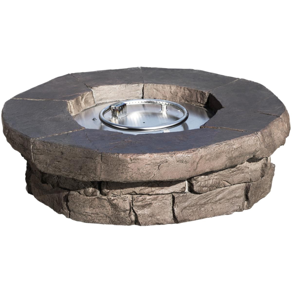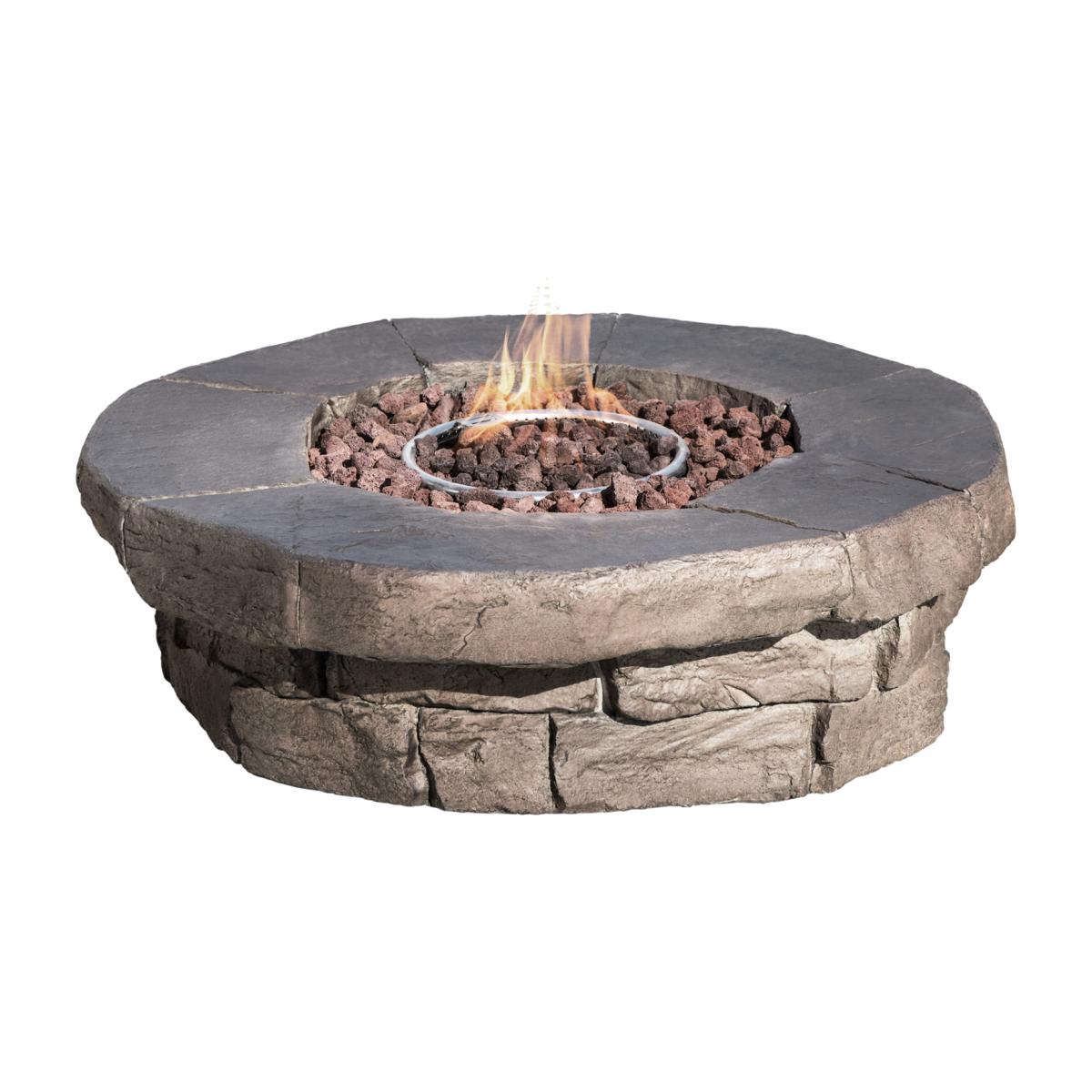 The Teamson Home Round stone finish gas firepit in dark brick colour is one of our Best Selling gas firepits!Looking for a way to spruce up your outdoor space for parties and events Get your hands on our large round gas fire pit and start the celebration off right! This stone effect gas burning firepit offers a great place to rest beverages so you and your guests can sit back and relax by the fiery glow of the outdoor fire. This round outdoor gas burning firepit has a stone brickwork effect ensuring supremacy in your garden or patio. Complete with a heat output of 50,000 BTU 14.6KW , a stainless-steel burner and integrated ignition, you can enjoy stable and ash-free green burning without the mess.