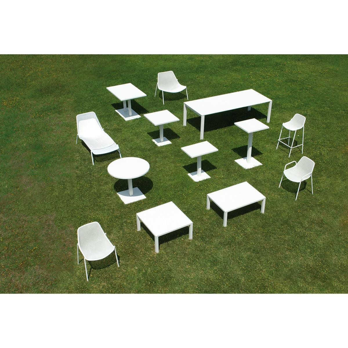 The Round Collection focuses on rounded lines for extremely comfortable seats while the tables are characterised by clean elemental shapes. The designs are based on the idea of enhancing the value of the materials used. This combines with technical innovation in the drawing process: steel sheets are pressed between two steel moulds to create three-dimensional shapes. They are distinctive innovative items and, thanks to their balanced design and discrete elegance, they are perfect for both contract use and home furnishing. The chairs have a steel frame and galvanised metal mesh bodywork. They are available in five colours, as are all the items in this collection. The bistro tables have a rigorous design, which is also suitable for more refined settings. The tabletop and base are made in sheet metal with tubular steel mountings. They are available in a square version in two sizes or in a rectangular version. The chairs from the same line complement these tables perfectly and are ideal for contract or domestic use.