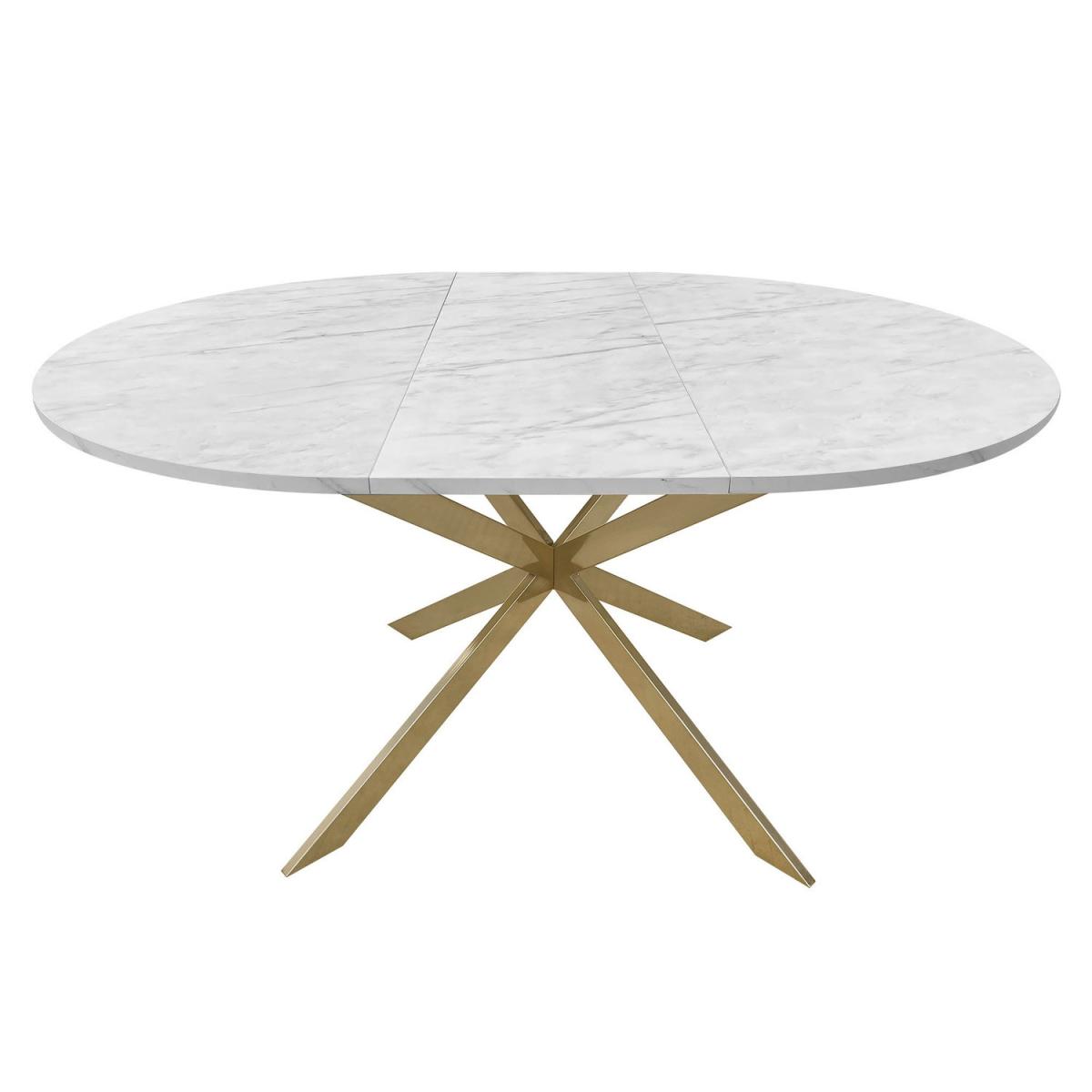 Round to Oval Marble Effect Extendable Dining Table in White - Seats 4-6 - Reine