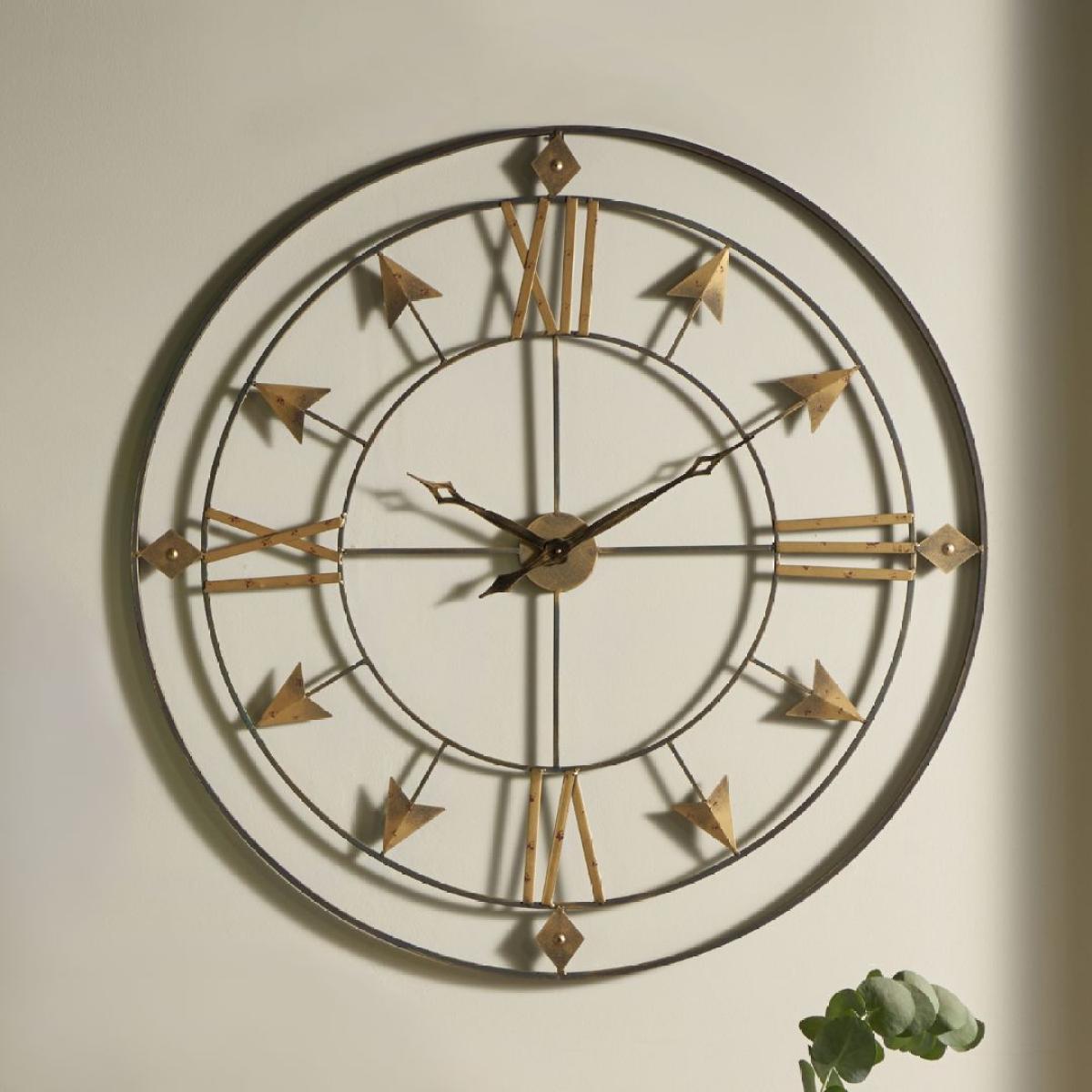 Traditional wall clock boasting an antique grey and gold finish. A gorgeous addition to your home, this Round Wall Clock is a striking piece from Pacific Lifestyle. Large in size, this metal wall clock boasts a delicate double frame finished in antique grey and gold. The clock comes complete with black clock hands and a large, cut out, roman numeral and arrow dial. It is ideal for use in lounges, hallways, kitchens and bedrooms. Traditional wall clock boasting an antique grey and gold finish. A gorgeous addition to your home, this Round Wall Clock is a striking piece from Pacific Lifestyle. Large in size, this metal wall clock boasts a delicate double frame finished in antique grey and gold. The clock comes complete with black clock hands and a large, cut out, roman numeral and arrow dial. It is ideal for use in lounges, hallways, kitchens and bedrooms.