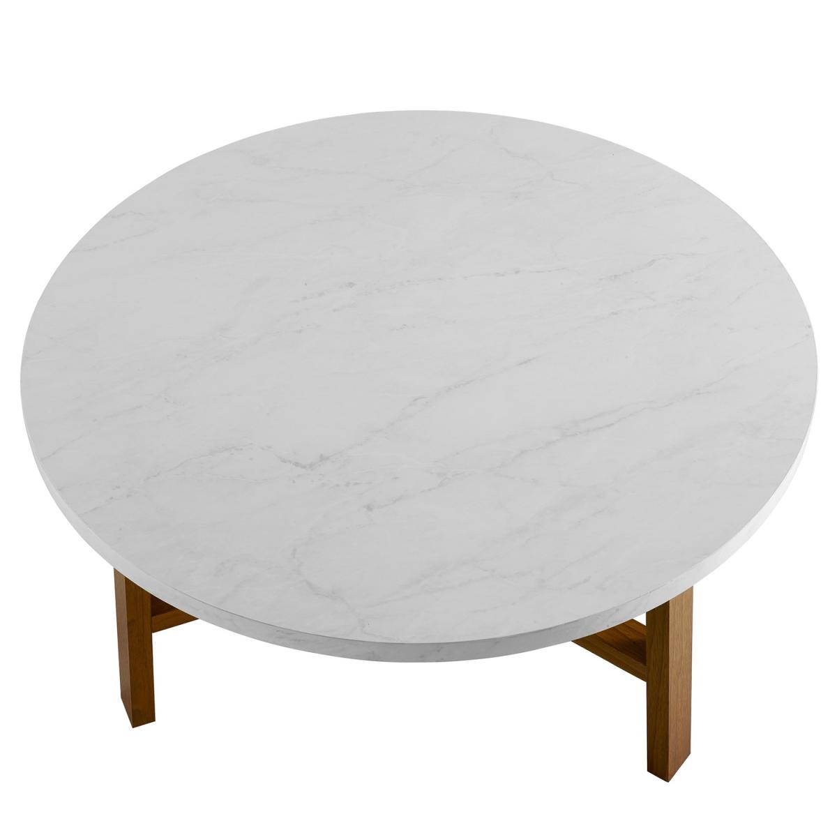 This mid-century round coffee table makes the ideal table for you to incorporate into your living space, as it's both stylish and functional. The table has a flattering faux marble top becoming the ideal spot to keep your magazines and TV remotes organized. The faux marble top is held up by three wood legs, for an overall two-toned appeal.