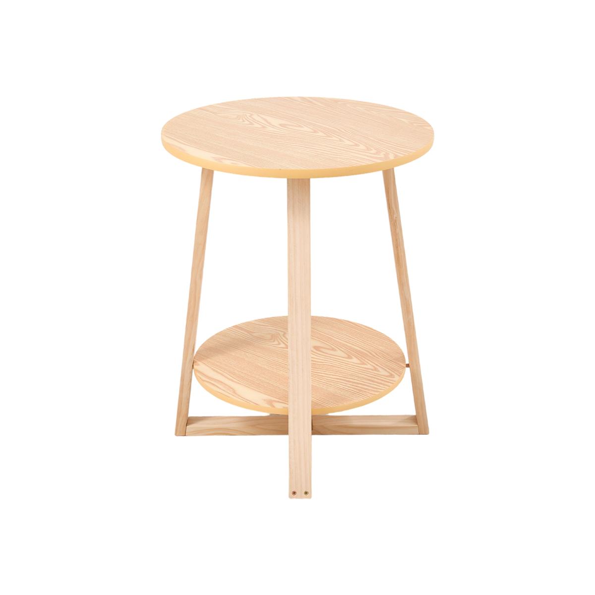 Round Wooden Side Table with 2 Tiers - Natural Wood / 50cm