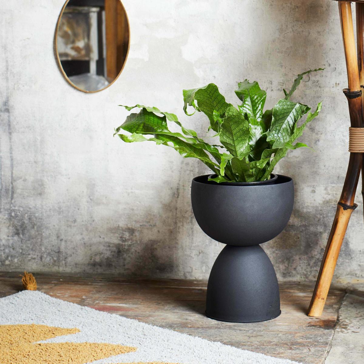 Crafted from iron with a textured finish, this large black planter will make a strong impact in any minimalists home paired with overflowing foliage.