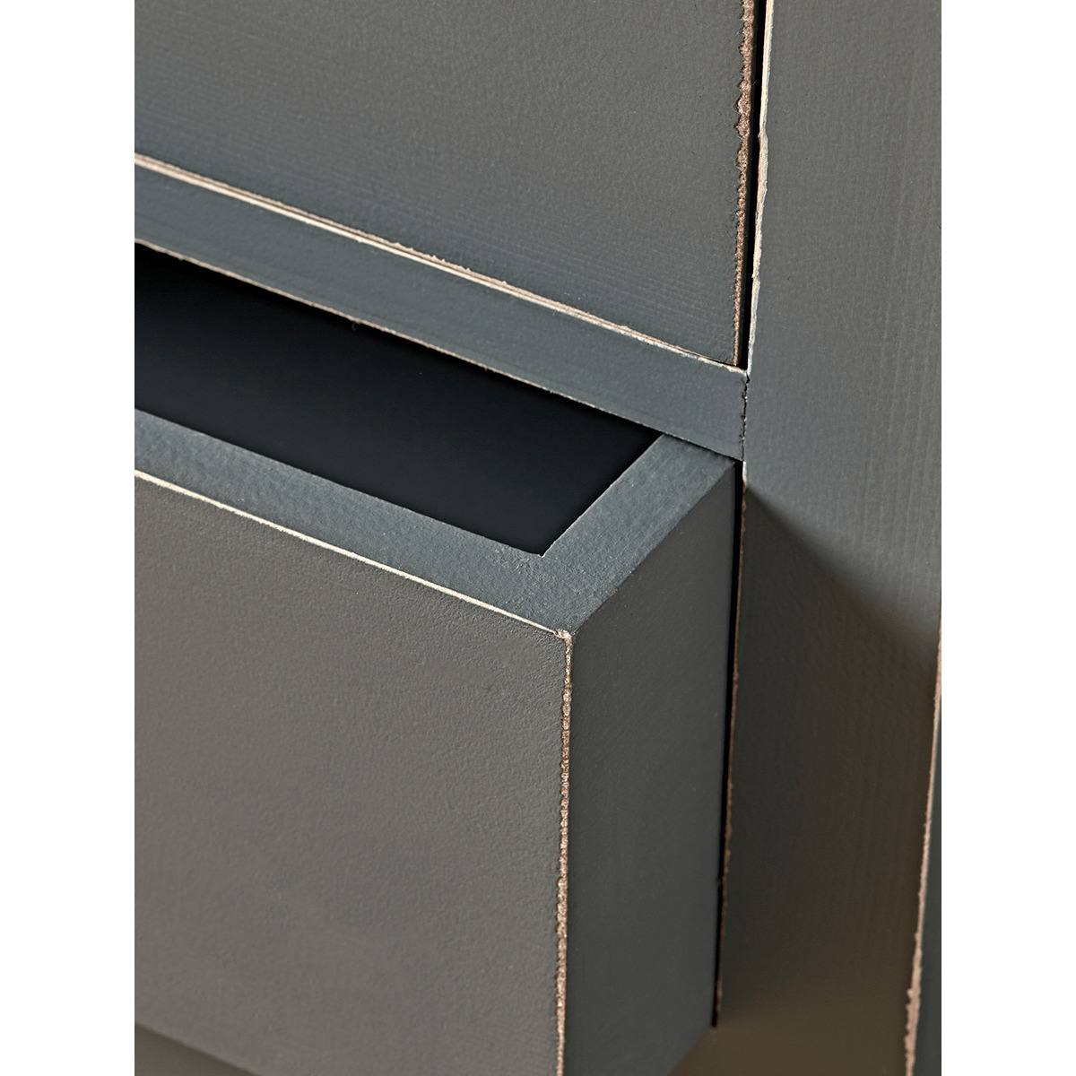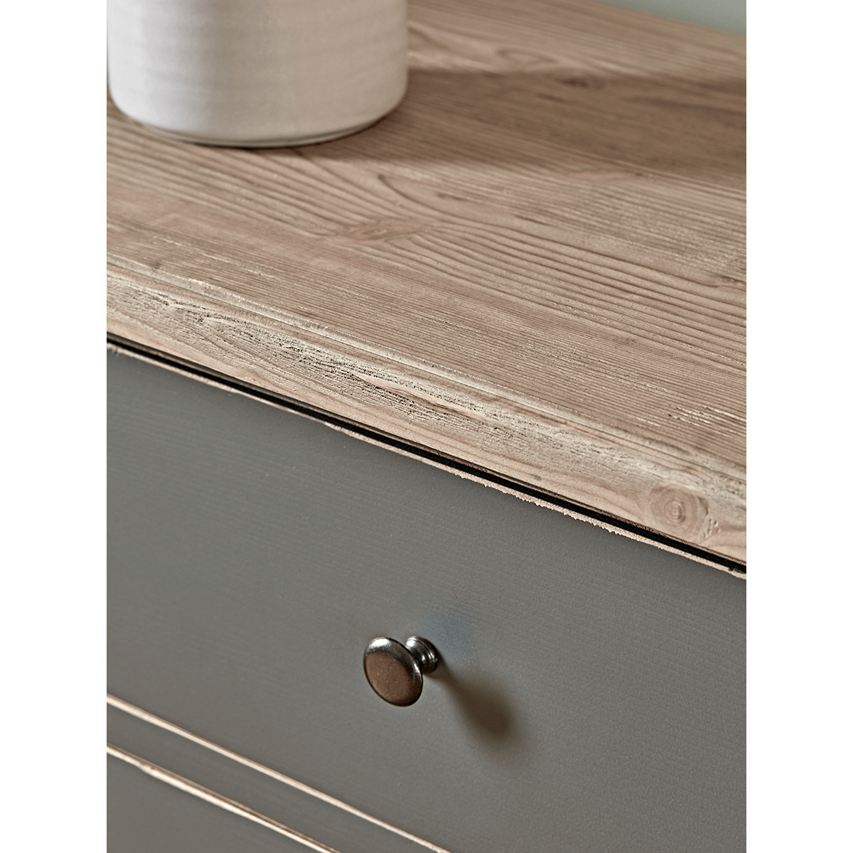 Made from solid pine with a distressed grey painted central console and a stained natural top, our rounded console table features three handy drawers, each with a metal pull, for a fantastic hallway storage solution. Each piece also features four shelves, for storage and display purposes.