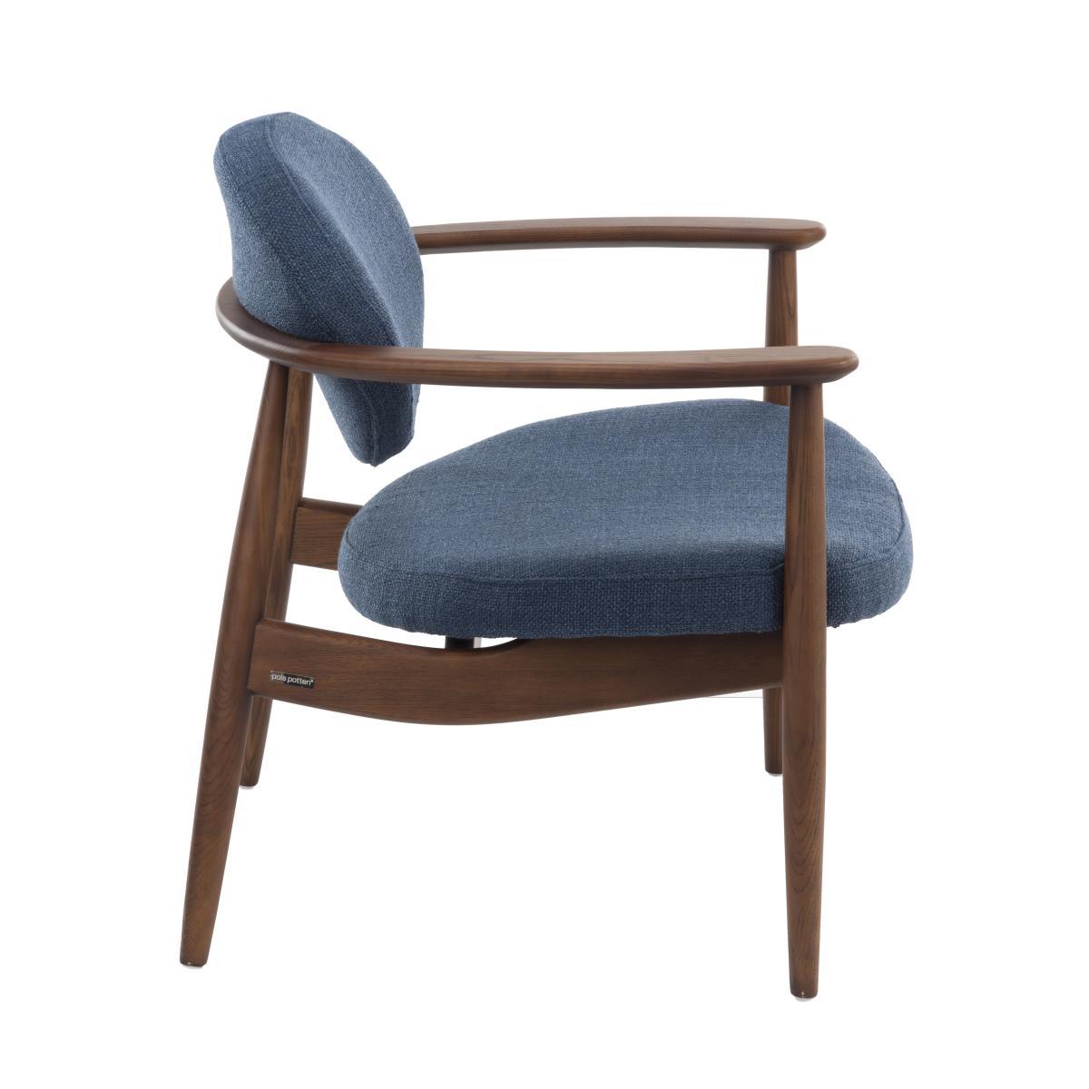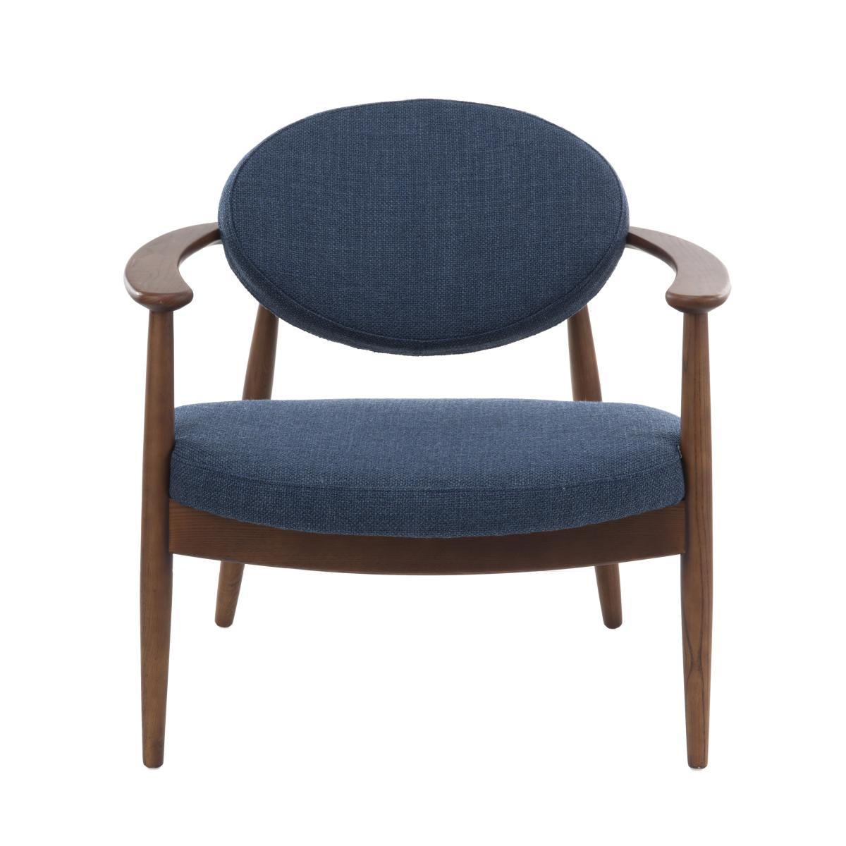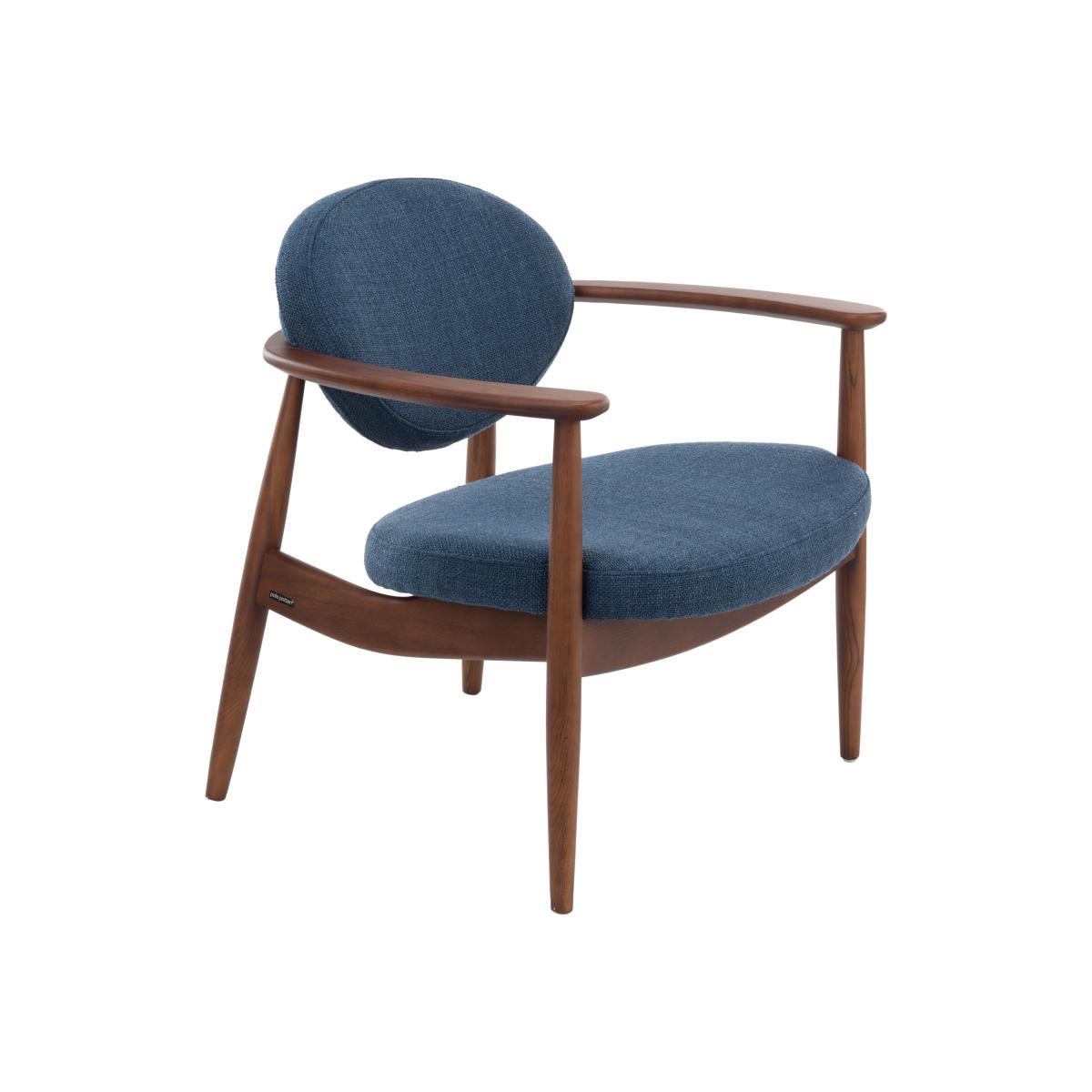 Roundy Padded armchair - / Fabric & wood by Pols Potten Blue/Natural wood