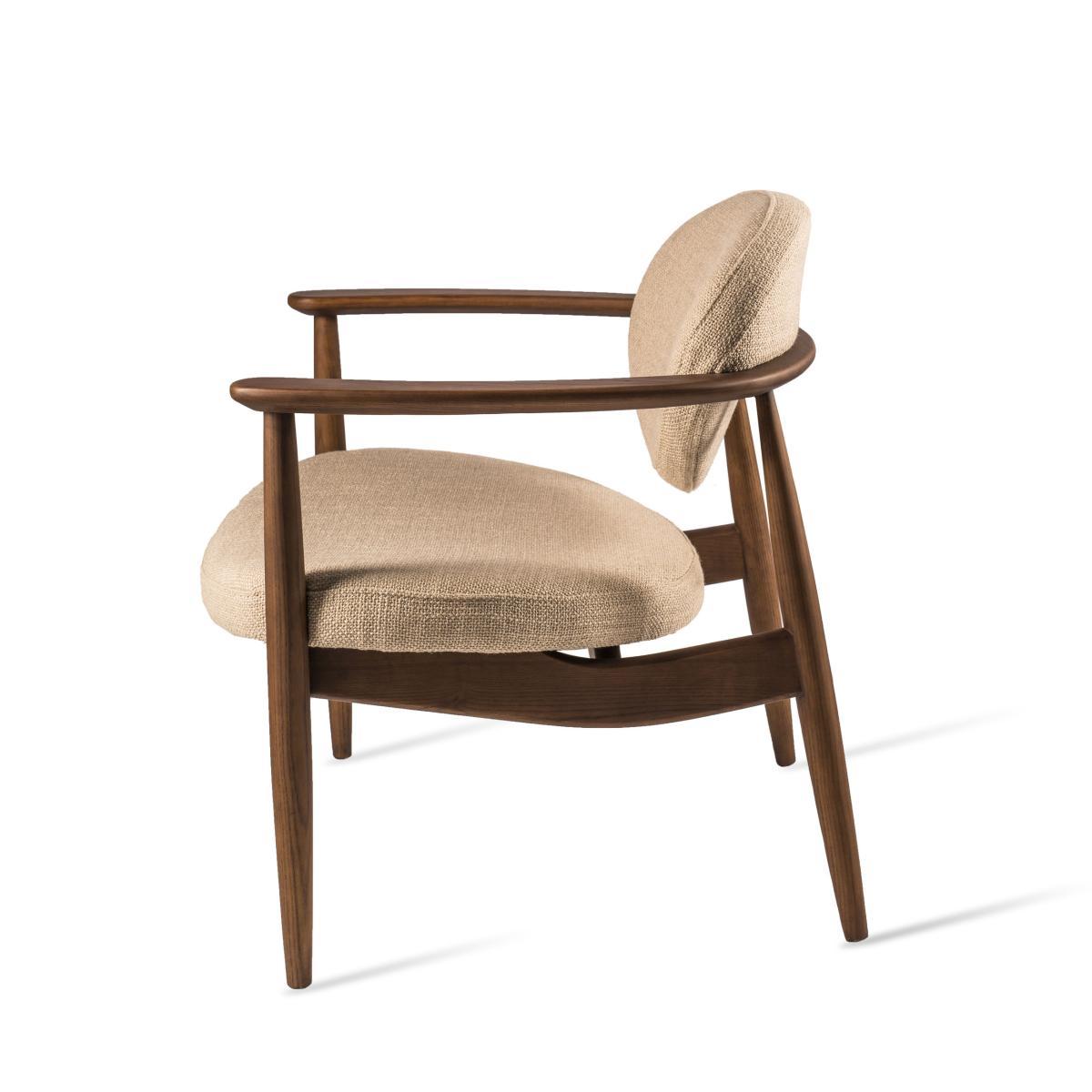 I love the Roundy armchair for its versatile design and neutral colour palette, making it a great addition to a variety of interiors. Its classic shape combined with the natural wood frame lends itself well to both modern and traditional spaces. It works beautifully in living rooms as an accent piece, or in bedrooms as a cosy reading nook. When styling, consider pairing it with textured throws or cushions in muted tones for a layered look, or add a pop of colour with vibrant accessories. Its neutral fabric makes it easy to coordinate with various colour schemes, while the wooden accents add warmth and sophistication to any setting.