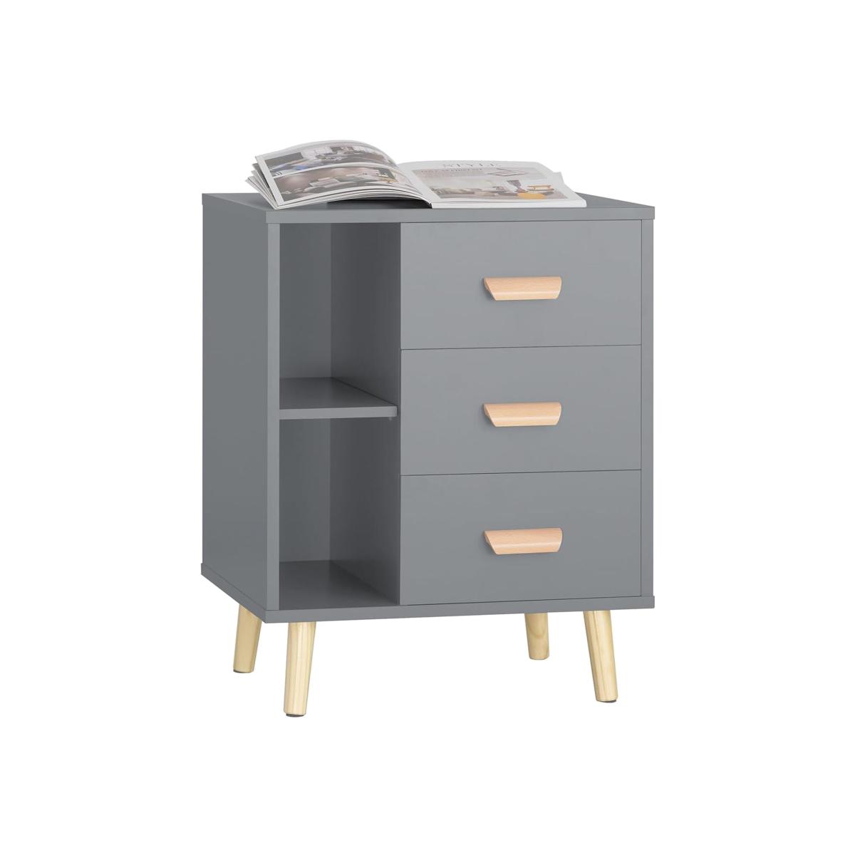 This side table nightstand creates a distinctive and modern atmosphere for your home. It is great to be used as a sofa side table or bedside table for you to get accessible to what you need. It offers ample storage space for books, magazines, remote controls, glasses and other small items, keeping your room tidy and organized. 3 slide-out drawers with handles provide ample storage space for your personal items. 2 open storage compartments and the top shelf offer additional storage and display space for you. Practical and space-saving, it is a good addition to any room. Elegant and simple design, it matches any home decor perfectly.