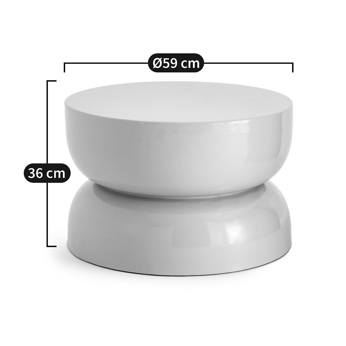 As a coffee table, end table or XL bedside table, Rouva is a portable piece of furniture made of iron covered with an ultra glossy finish. With its round and flat shape, it has a welcoming feel. An elegant and versatile piece of furniture by AMPM.Product Details • Glossy lacquered iron, synthetic resin-based finishing coating. Dimensions • Diameter: 59cm • Height: 36cmDelivery:. Sold pre-assembled. Available for home delivery. • WOOD FROM SUSTAINABLY MANAGED FORESTS. FSC® certified wood comes from forests that are environmentally, socially and economically well managed. Dimensions and weight of parcel1 parcel • L69 x H50 x D69cm, 12kg