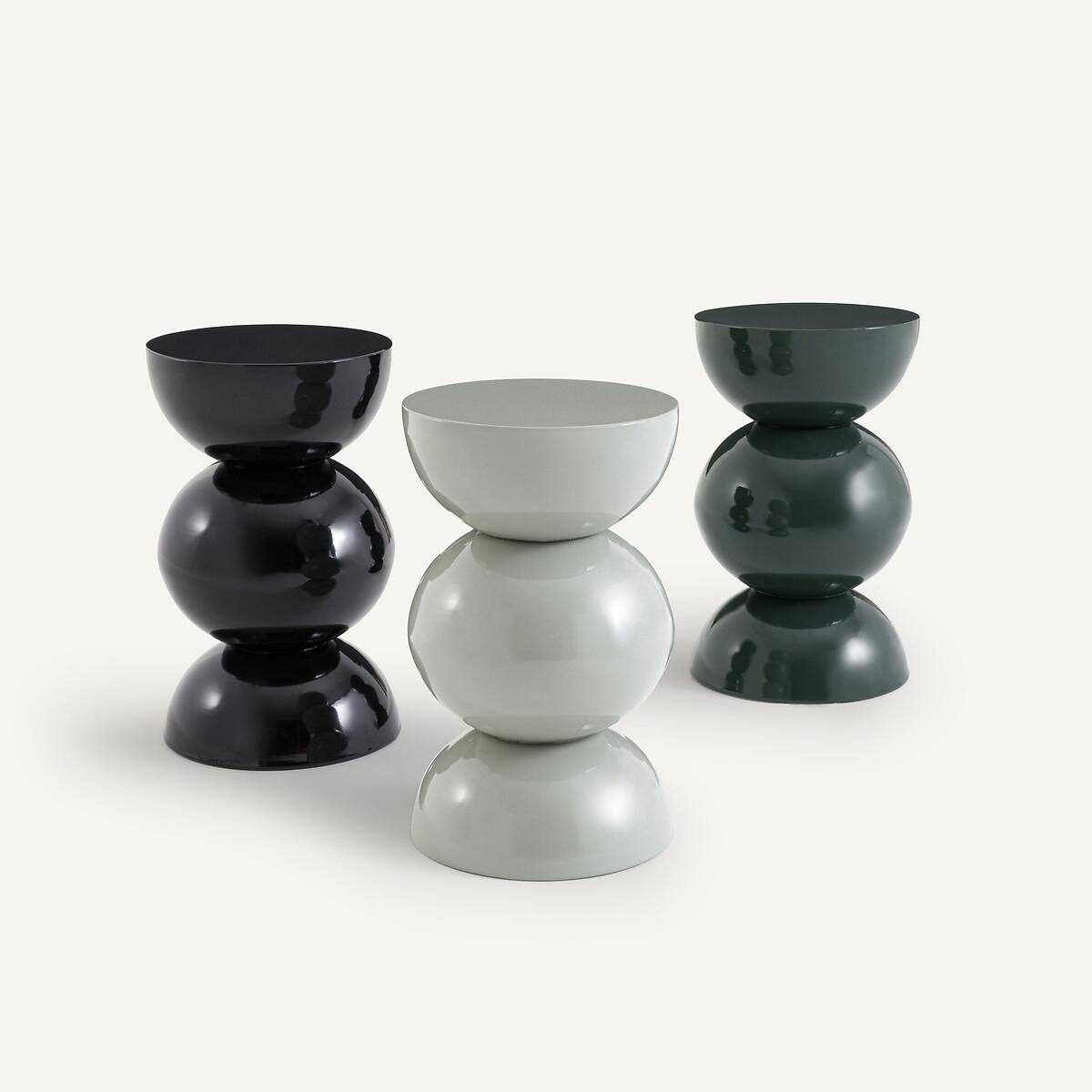A curved graphic line for this side table. To be used alone or in conjunction with the other side tables sold on the site. Its African-inspired design, with a worked finish, makes it an aesthetic and functional product.. It can also be used as a bedside table. An AMPM exclusive. Product Details • Metal with a lacquered finish. Dimensions • Diameter: 31cm • Height: 50cm Parcel dimensions and weight1 parcel • L38 x H59 x D38cm • 5kg