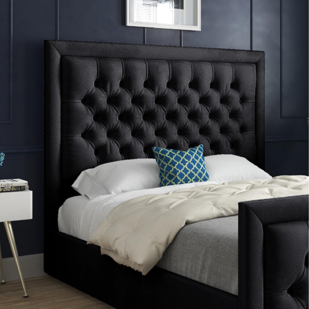 A best seller, the Rovigo is extremely popular. Exuding sophistication and opulence, the Rovigo will take your breath away. The elevated matching fabric border surround on the headboard and footboard beautifully compliments the deep buttoned upholstery on both the headboard and footboard. Choice of buttons, either opt for fabric buttons to subtly to compliment your fabric or diamante to stand out. The padded headboard is complimented with a fluted elevated border that creates a frame like look for the spectacular pleated upholstery. It brings a modern twist to a traditional design. High headboard with proportionately sized footboard to encapsulate your mattress. The bed is exquisitely finished and boasts solid slats for extra durability.