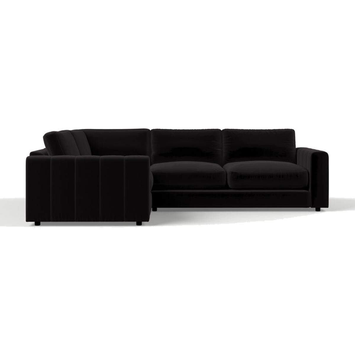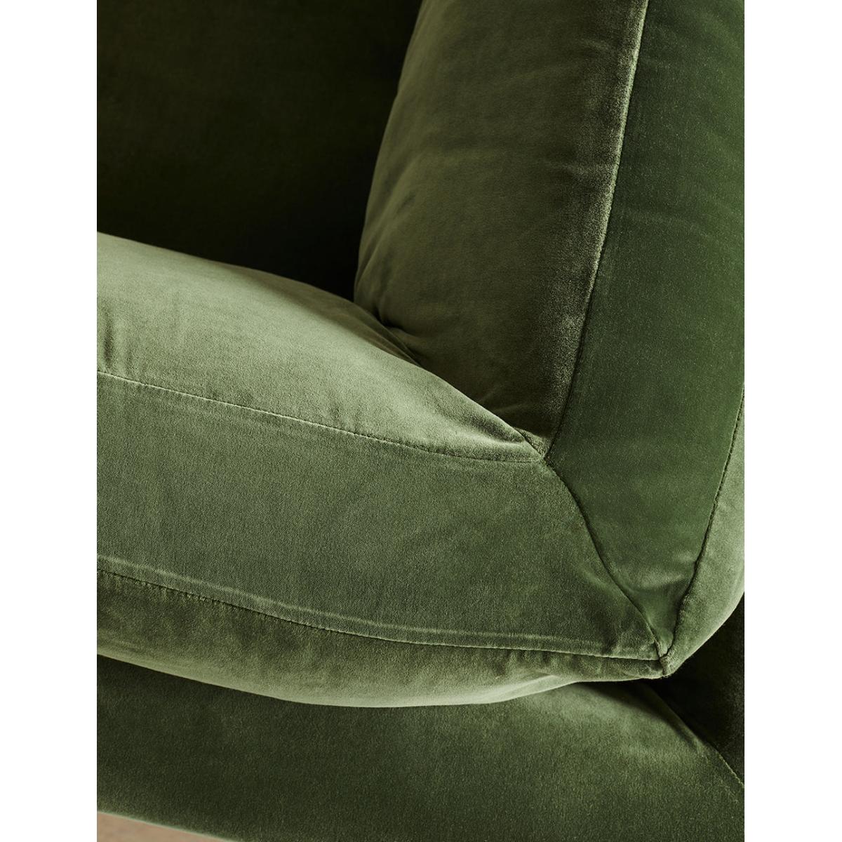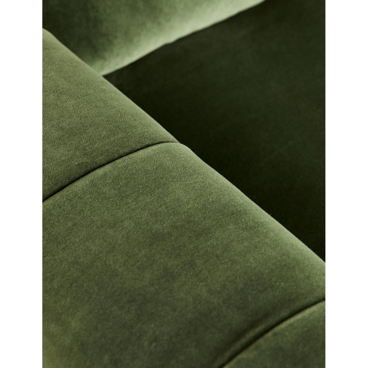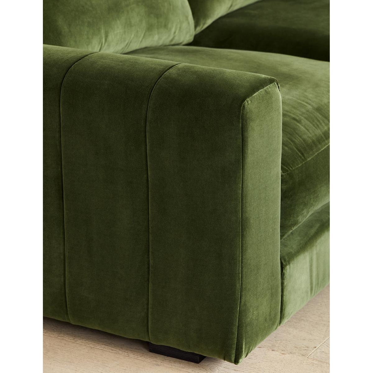 Meet our Rowan Corner Sofa. This super soft and plump L shape sofa is our largest family sofa yet. The Rowan is a roomy 4-seater sofa with plenty of space for more people to snuggle up at the end of a long day. With ultra-deep fibre filled cushions for maximum comfort, there’s room for the whole family. The Rowan Corner Sofa is low to the ground and boasts a beautiful panelling detail on the arms that elevates this contemporary sofa to a unique statement piece of furniture. Choose between a right-hand facing sofa or a left-hand facing sofa to suit the shape of your home and style this contemporary sofa. Photographed here as a left hand facing in Vintage Green Velvet. The leg colour in the product image is Black. We recommend you order a free fabric swatch to see your chosen material up close before ordering your sofa.