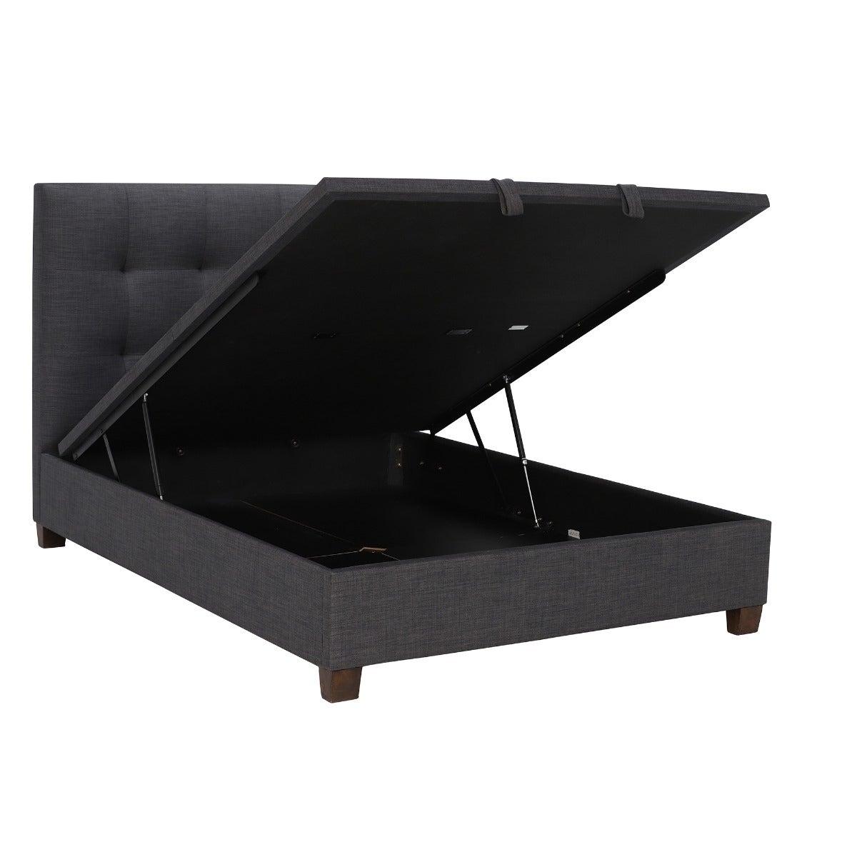 Design. Give your bedroom a modern upgrade with the Rowan Ottoman King Size Bed. If you’re looking to make the most out of your space, the smart ottoman storage that Rowan provides is the perfect choice, with a ventilated base to ensure that all of your stored belongings are kept in the best condition. Finished in an on-trend slate grey which will add contrast and depth to any space, the Rowan packs plenty of style and is a must have for any modern home.