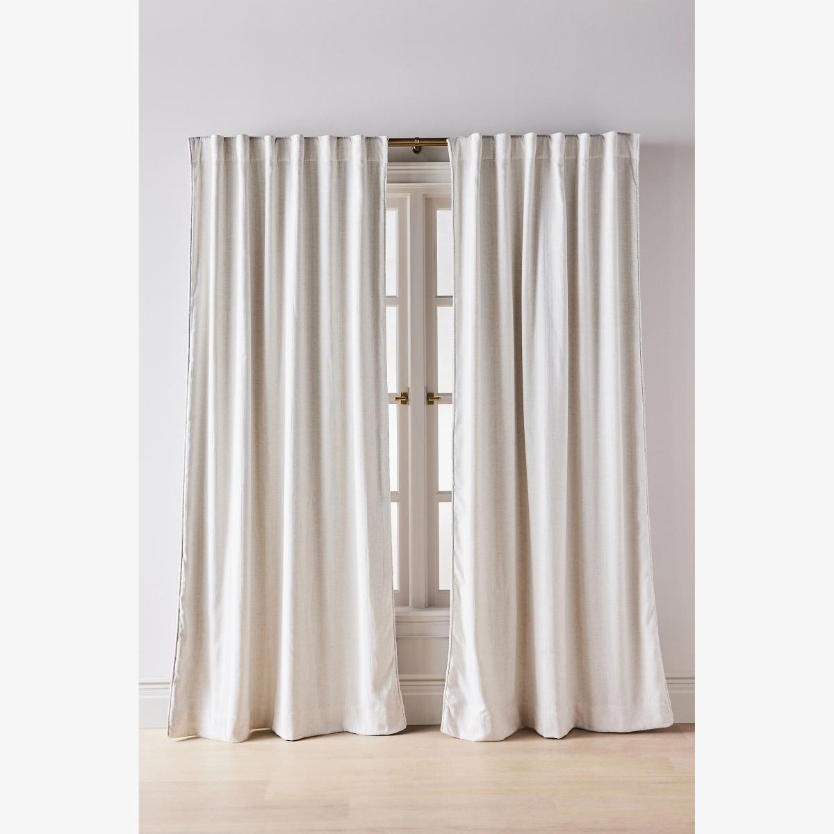 I love the Rowen woven textured ruched piping curtains for their clean, modern look with a subtle textural detail that adds visual interest without overpowering a space. They work particularly well in neutral, minimalist, or Scandinavian-inspired interiors where their understated elegance complements both contemporary and more classic furnishings. Practical styling tips include pairing them with sleek curtain rods for a seamless finish and choosing a light or neutral colour palette to maximise natural light. They also hang beautifully when slightly pooled on the floor for a relaxed, chic feel, making them versatile for living rooms, bedrooms, or even dining areas.