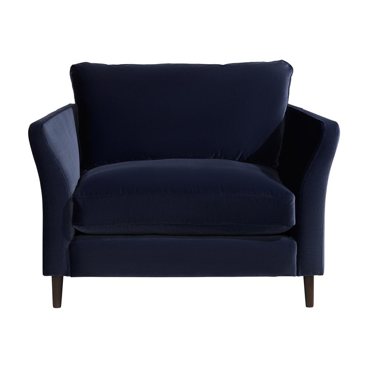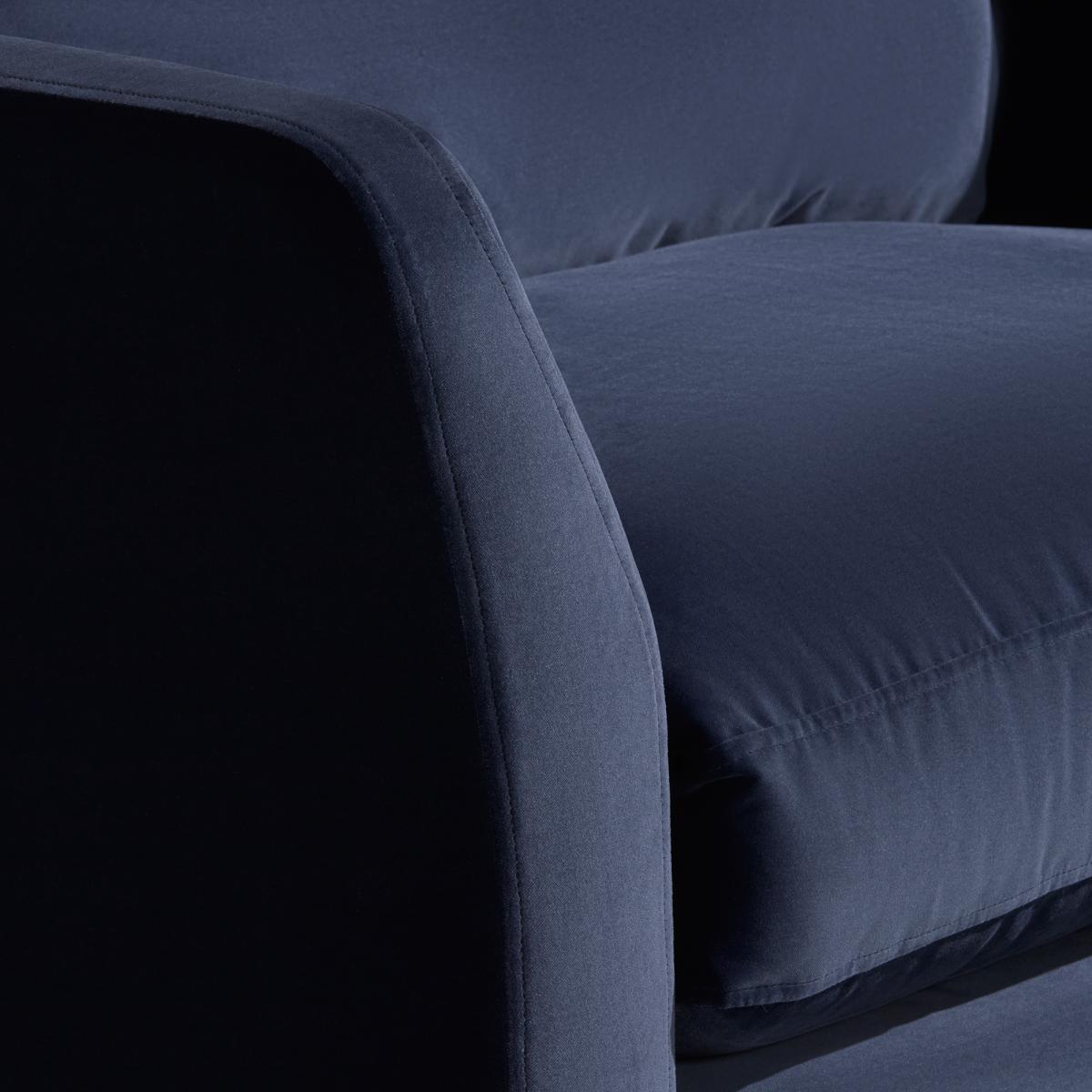 I love this loveseat for its bold blue fabric, which adds a pop of colour and personality to a variety of interiors. It works particularly well in contemporary spaces with clean lines, but can also bring a cosy, inviting vibe to more eclectic or traditional schemes. Practical styling tips include pairing it with neutral or patterned cushions to enhance its colour, or placing it in a corner to create a relaxed reading nook. Its compact size makes it versatile for smaller living rooms or as a statement piece in larger open-plan areas. The simple yet stylish silhouette ensures it remains timeless, while its colour offers plenty of scope for different styling approaches.