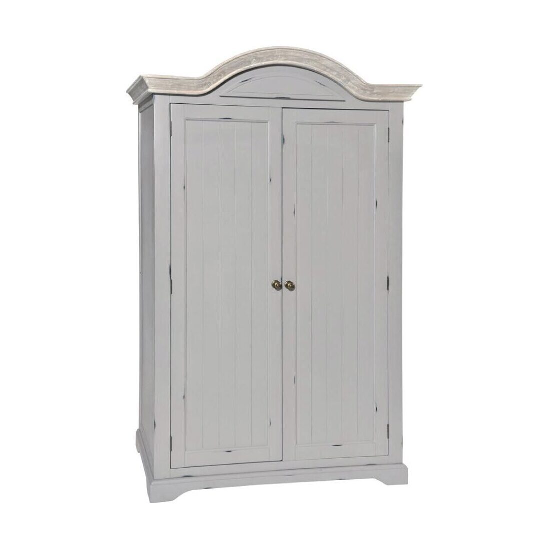 Wardrobe Hanging with Shelf. Finish: Distressed Painted Limed Top. Material: Grey distressed painted new pine with lime wash tint surface.