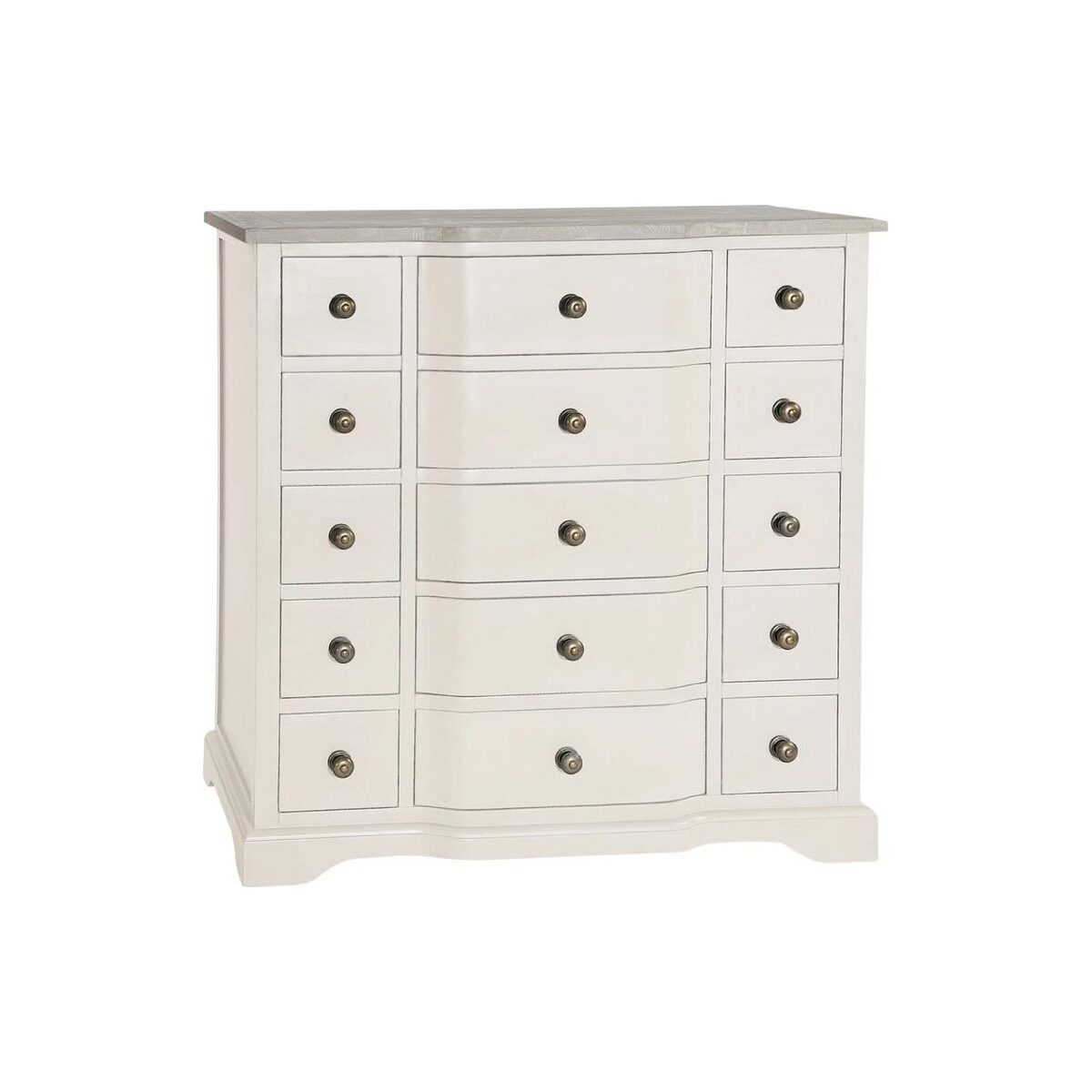 I love this piece for its classic yet versatile look, making it a great addition to both traditional and contemporary interiors. The French ivory finish adds a soft, neutral tone that works well in bedrooms, living rooms, or even hallways, providing a gentle focal point. Practical styling tips include pairing it with vintage or distressed accessories for a shabby chic vibe, or contrasting it with bold colours and modern hardware for a more eclectic look. Its ample drawer space makes it as functional as it is stylish, making it an excellent choice for those wanting to combine practicality with timeless charm.