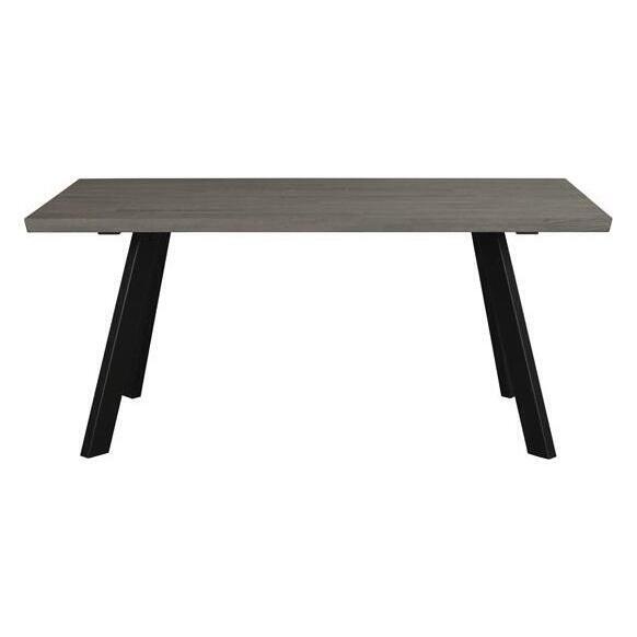 Medium sized beautiful dining table in solid smoke coloured pigmented oak. Two-piece table top in stylish design. Legs in powder coated black metal. The table is part of our Fred collection.