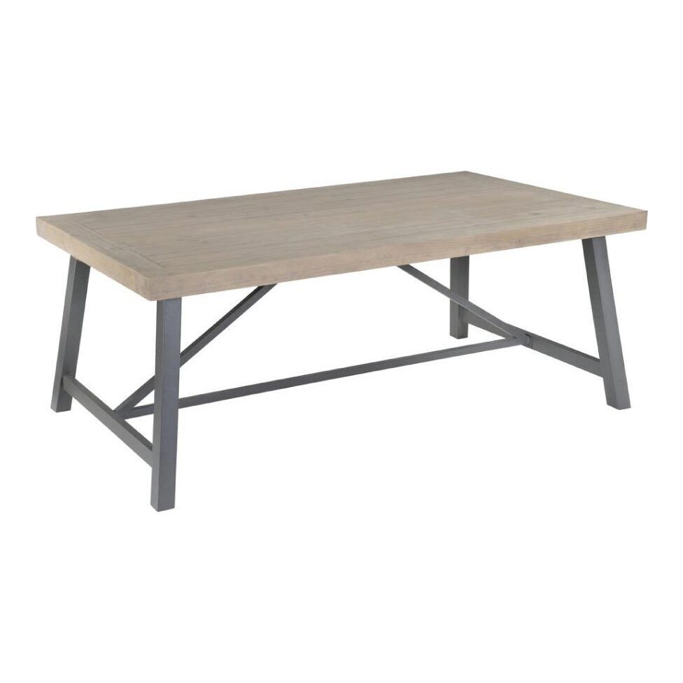160 x100 Extendable Dining table. Finish: Pine Driftwood. Material: Powder coated steel & semi rough sawn new pine with grey wash tint.