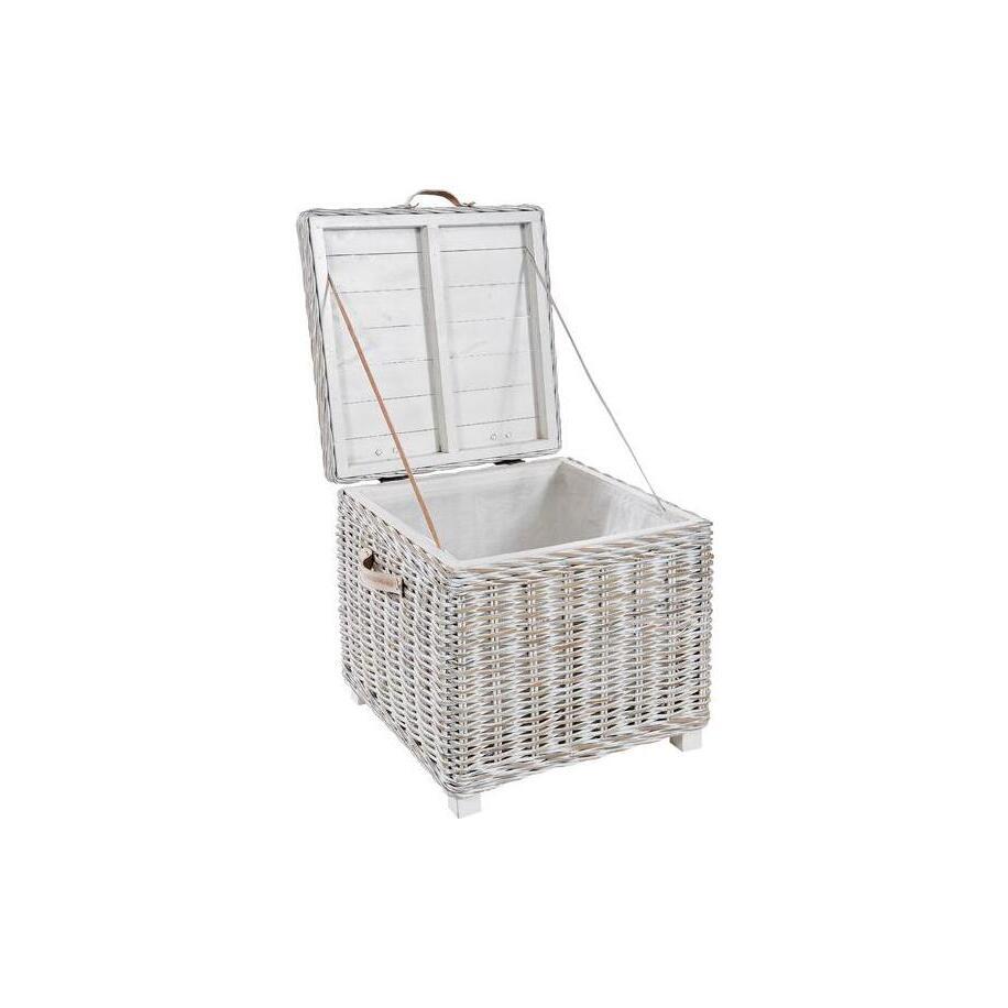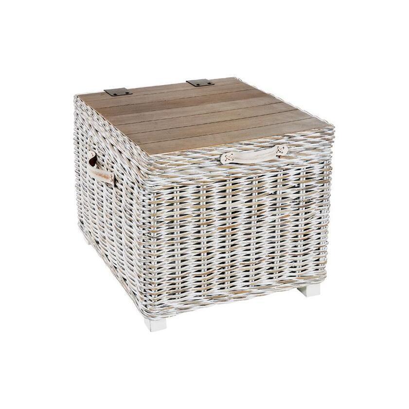 Storage side table made from whitewash kubooo rattan with grey wash wood top. Part of the Maya White Collection.