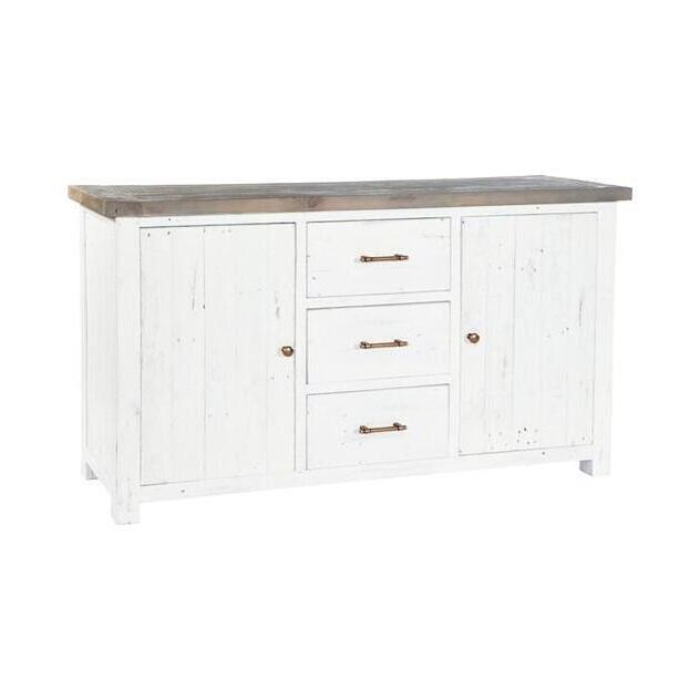 Taking its inspiration from driftwood adorned beaches along the Eastern Sea Board and the inherent character of its white-washed colonial homes this large sideboard boasts ample storage under lacquered timber tops which enhances the intrinsic character and adds a resilient coating to the reclaimed timber used in its construction.