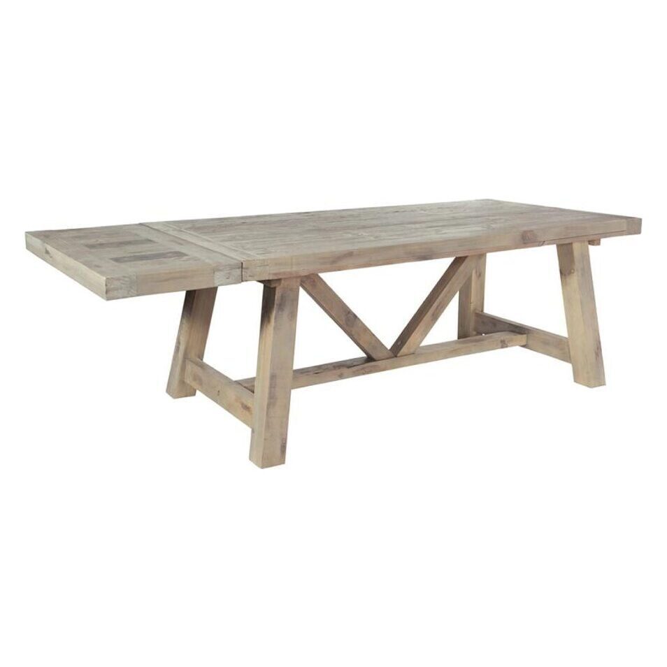 I love this dining table for its rustic yet versatile appeal, making it a great centrepiece in both country-style and modern interiors. Its natural, weathered finish brings warmth to a space, while its substantial size ensures it’s practical for family meals or entertaining guests. To style it effectively, consider pairing with a mix of upholstered and wooden chairs for a relaxed look, or go minimalist with sleek designs to highlight its natural charm. Adding a simple runner or a few centrepiece accessories can help break up the wood’s texture without detracting from its rustic appeal. This table works particularly well in open-plan kitchens or dining areas aiming for a welcoming, lived-in feel.