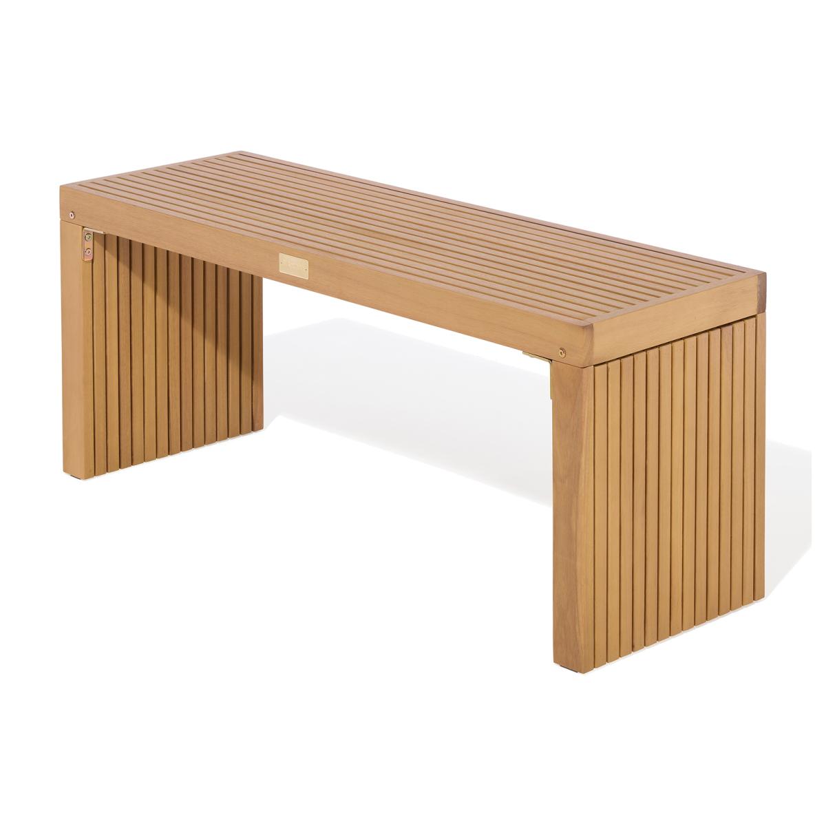 This bench strikes a great balance between form and function with its clean, minimalist design and warm wood finish. I love it for adding natural texture to outdoor spaces like patios or garden alcoves, but it also works well indoors in hallways or boot rooms where practicality is key. Its sturdy construction and simple lines allow it to sit comfortably in both contemporary and rustic interiors. To style it effectively, consider pairing it avec cushions or throws for added comfort, or place it against a textured wall or backdrop for visual interest. It’s a versatile piece that can be both a practical seating option and a decorative element in various settings.