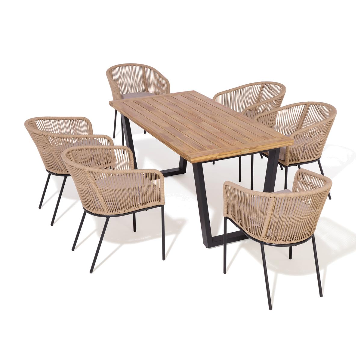 The Rowlinson Oslo 6 Seat Dining Set has a bold design paired with function, providing the perfect place for family meals and social occasions. Featuring a durable acacia table top, with dark grey steel table and chair legs creating a striking contrast and industrial look. The Oslo also features contemporary natural coloured rope weave on the dining chair provides comfortable seating for up to six people, making the Oslo a stylish set which is perfect for indoor or outdoor use. Rowlinson Oslo 6 Seat Dining Set - 160cm Table - Brown