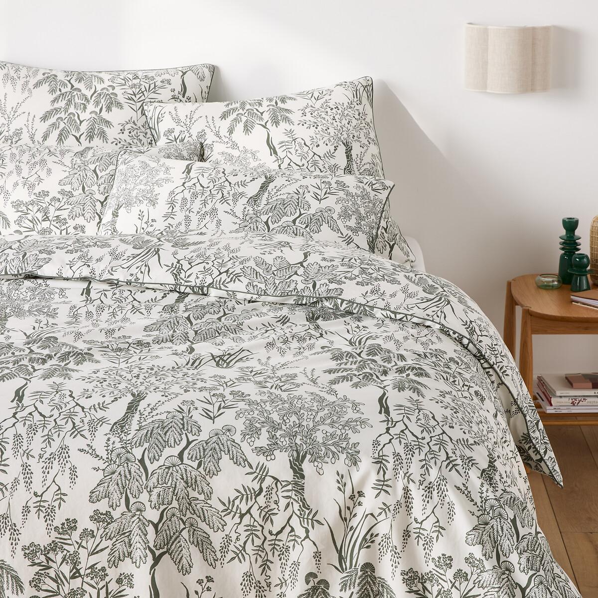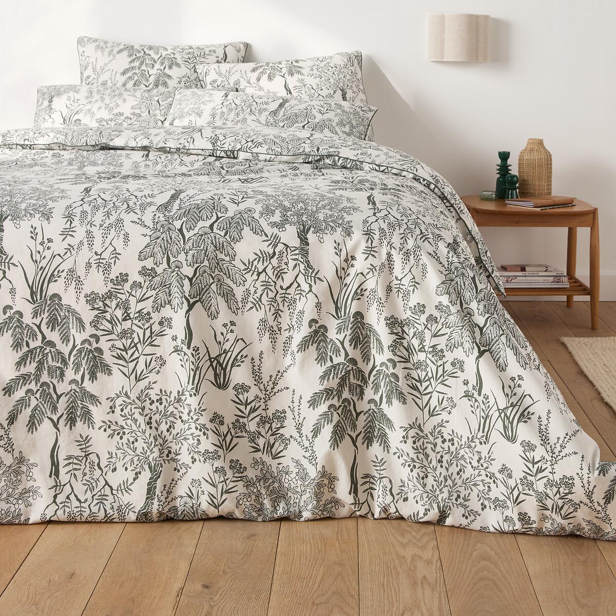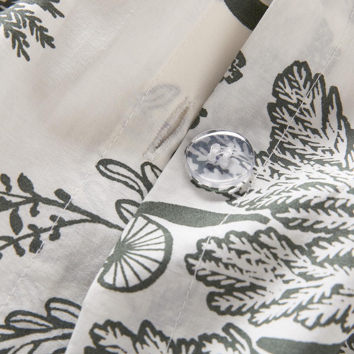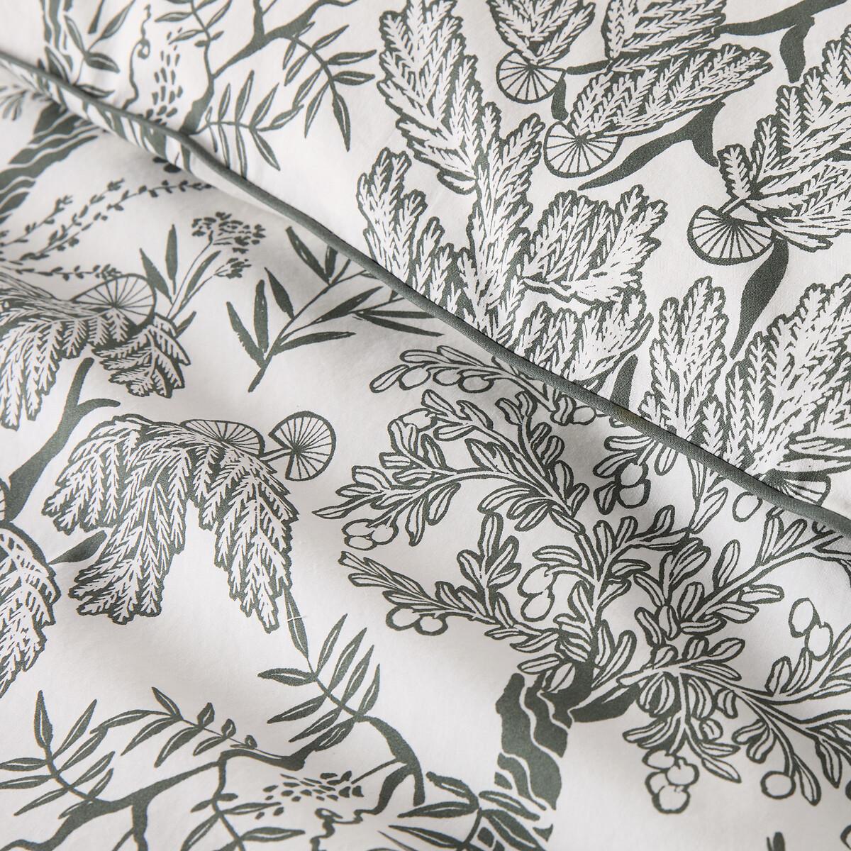 Drawing inspiration from the lush vegetation of the south, where laurel, olive trees and wisteria are revisited in a Mediterranean "jungle" style. Roxane bed linen creates a feel-good atmosphere and is an exclusive La Redoute Intérieurs design. Washed cotton percale offers a pleasant feeling of freshness and lightness. Its tight weave makes it particularly soft for premium comfort. A matte and smooth material that will soften over time. Product Details • 100% cotton • Washed cotton percale • Leaf print on both sides • Contrasting khaki taped edging • Straight buttoned hem. As the seasons change, add your own personal touch by mixing the Roxane range with our range of Scenario plain bed linen. Care Advice • Machine washable at 60°C • By washing your laundry at 40°C instead of 60°C, you limit energy consumption. Dimensions • 140 x 200cm: Single • 200 x 200cm: Double • 240 x 220cm: King • 260 x 240cm: King • OEKO-TEX® Standard 100. Standard 100 certification by OEKO-TEX® tests textile products for harmful substances via an independent, international label.